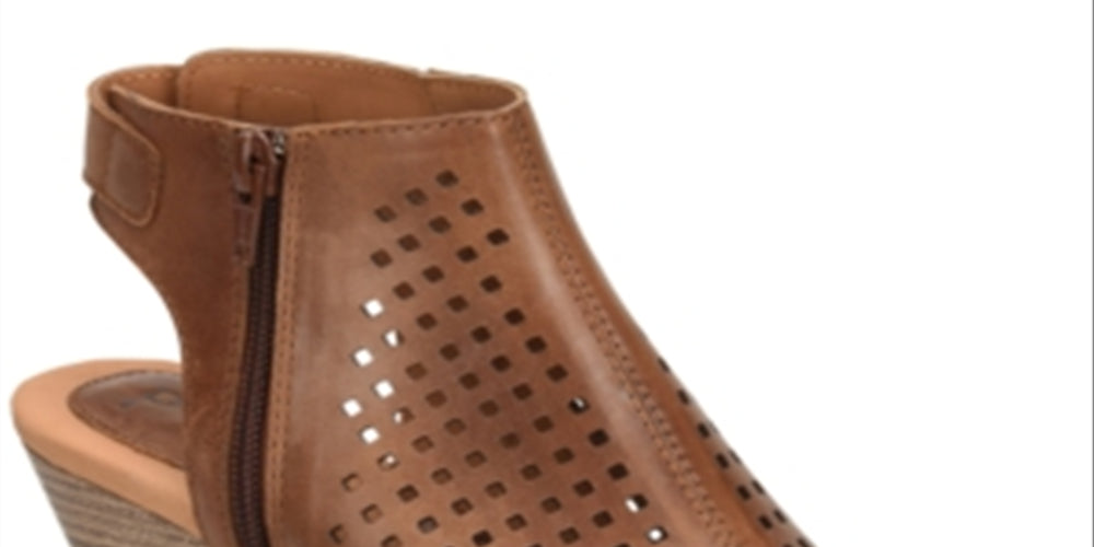 Perforations and a stylish block heel lend contemporary appeal to the sleek silhouette of the Thebe sandals from B.O.C.| 2-1/2 stacked block heel| Round-toe slingback sandals with zipper closure| Perforated details at upper| Leather upper; manmade sole| Imported