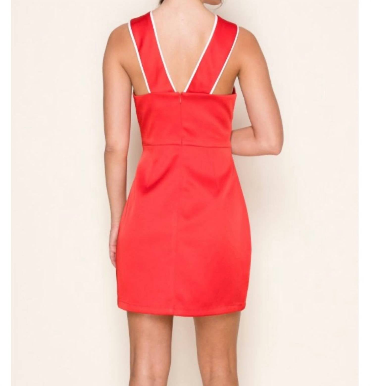 The kind of easy and flattering dress you'll be reaching for all season long. Introducing the Contrast Halter Neck Dress by B.right, an exquisite piece for your sophisticated summer wardrobe. This sleeveless A-line mini dress features a stylish turtleneck and chic white contrast piping on a bold red backdrop. Made from high-quality polyester, it ensures a sleek silhouette, ideal for special occasions like anniversaries or festive gatherings. Closure is secured with a convenient back zipper, and care is simple with dry clean instructions.