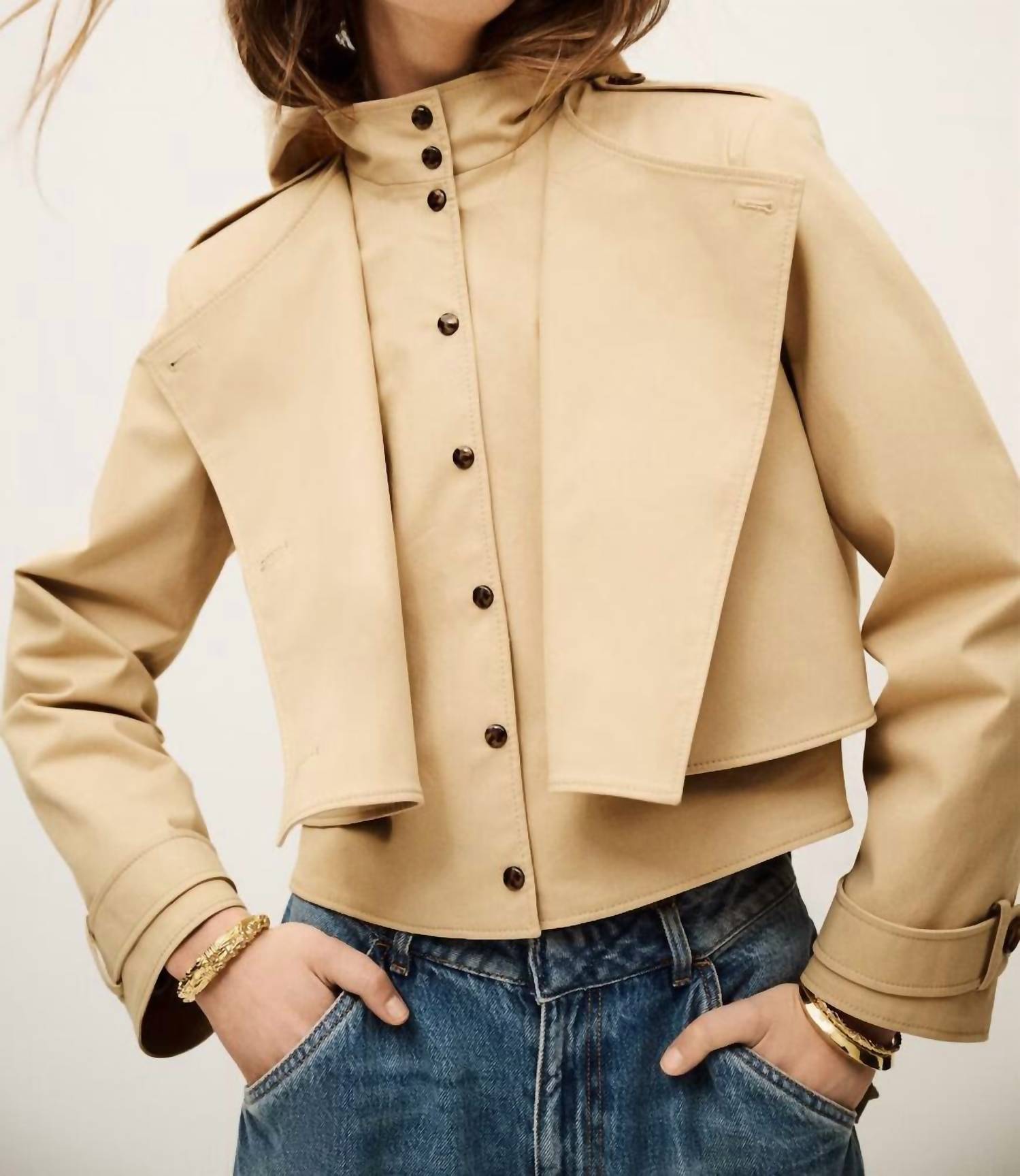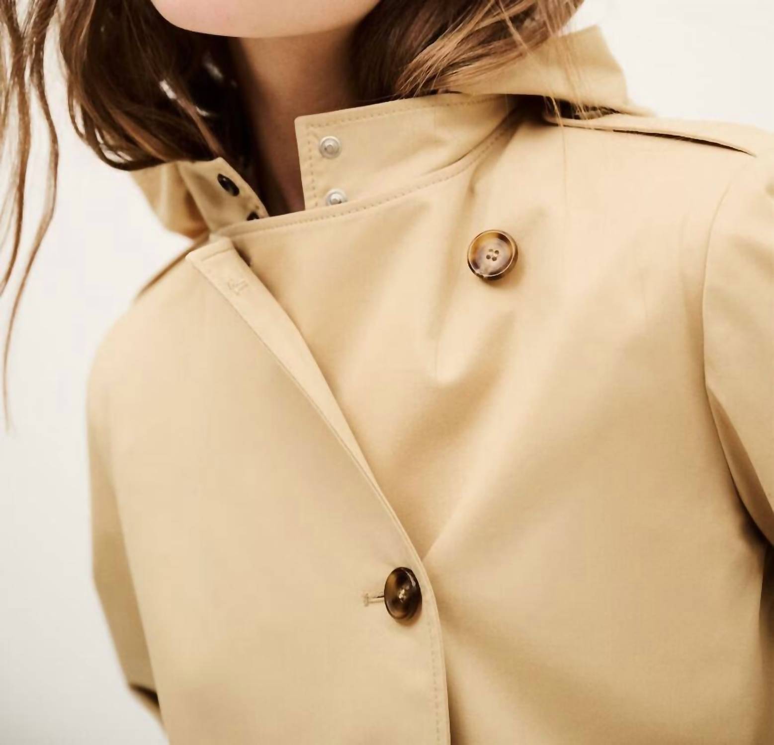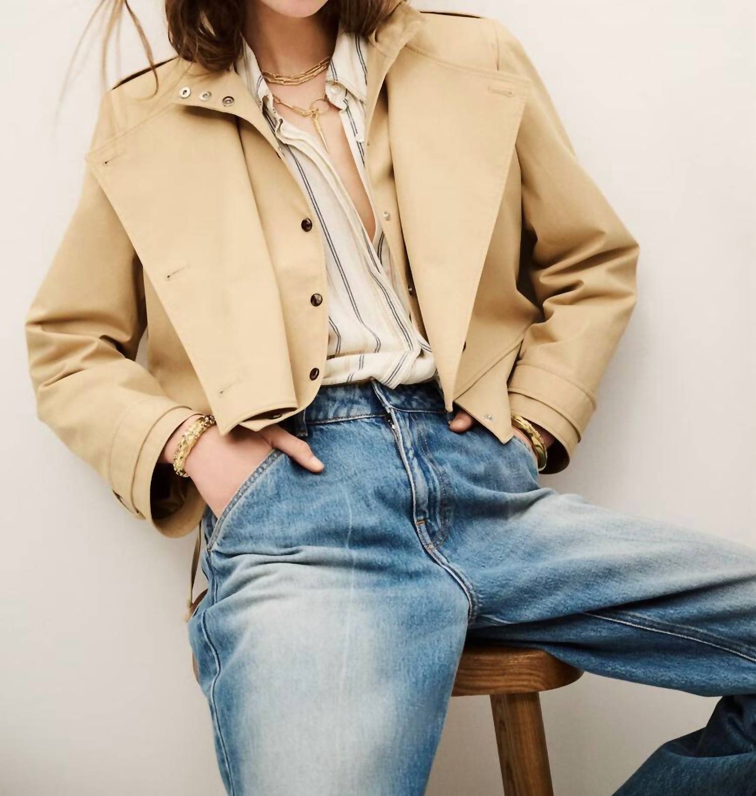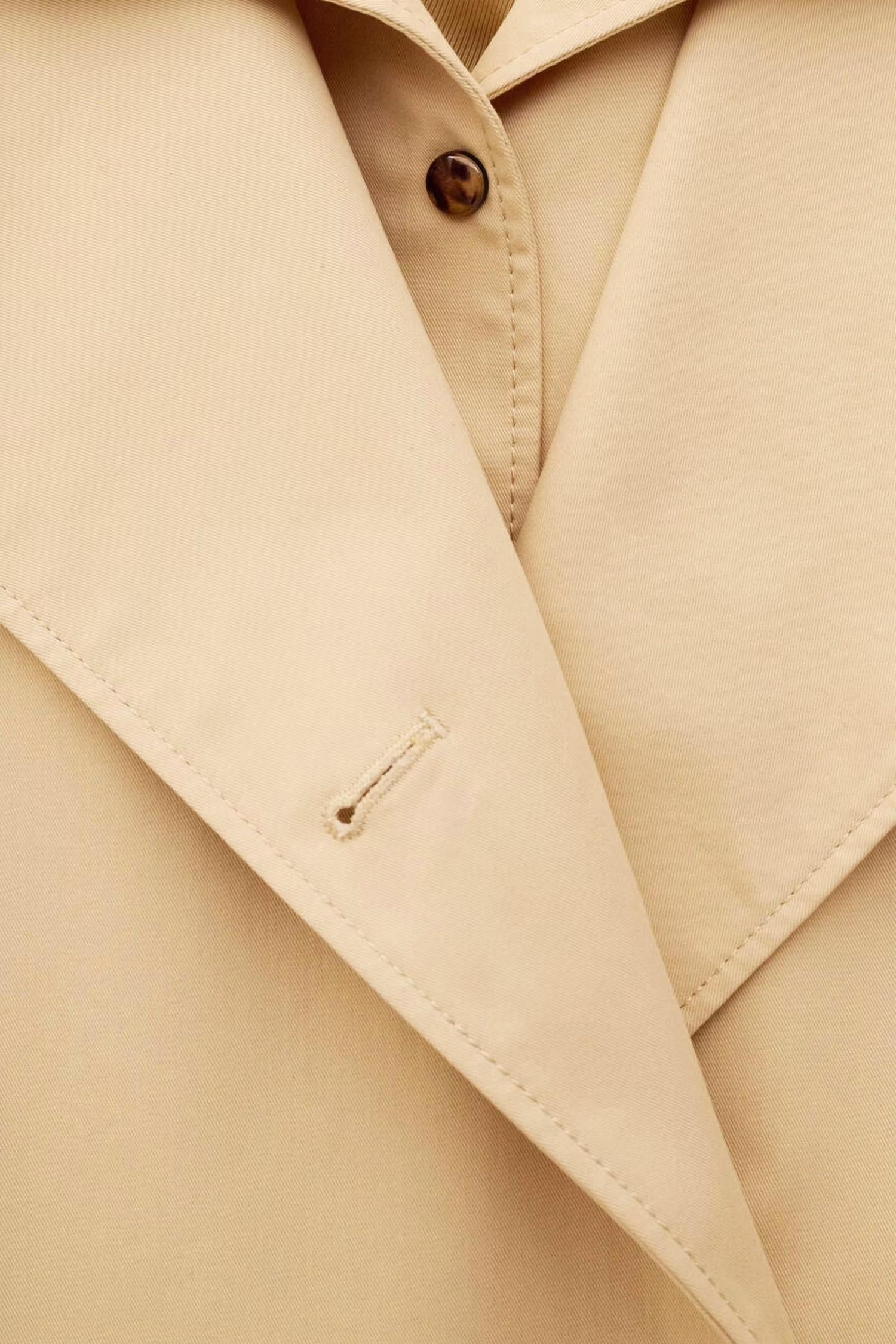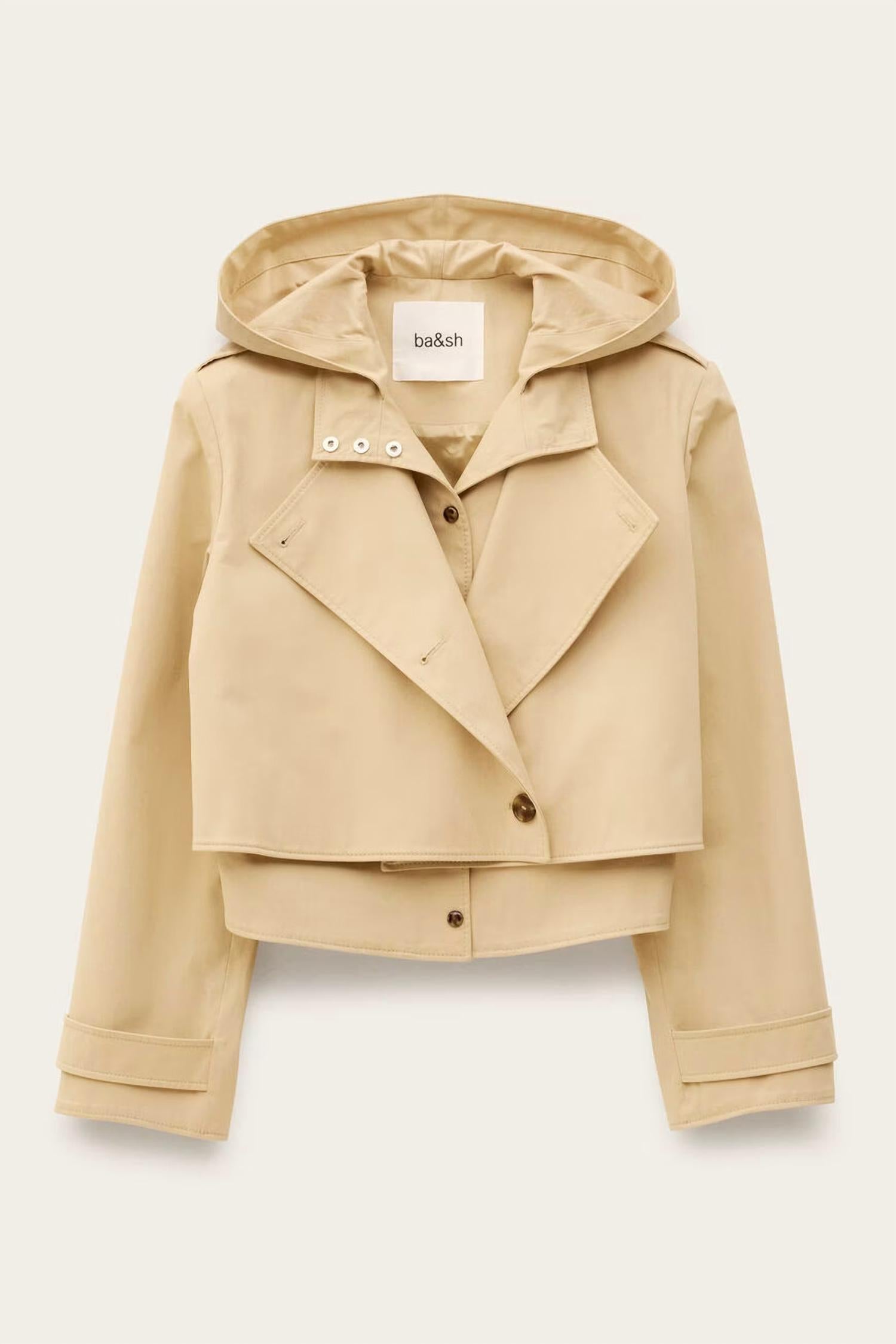 The perfect trench coat that you can throw over any outfit. Introducing the Thym Classic Trench by ba&sh, an elegant version of the timeless trench coat in versatile beige. Crafted from a soft, high-quality composition of 98% organic cotton and 2% elastane, this piece offers both comfort and structure. The long sleeves and double-breasted button closure define its classic silhouette, while its belted waist ensures a perfect tailored fit. For practical chic, it features side pockets and is designed for transitional wear, but should be dry cleaned to maintain its premium quality.
