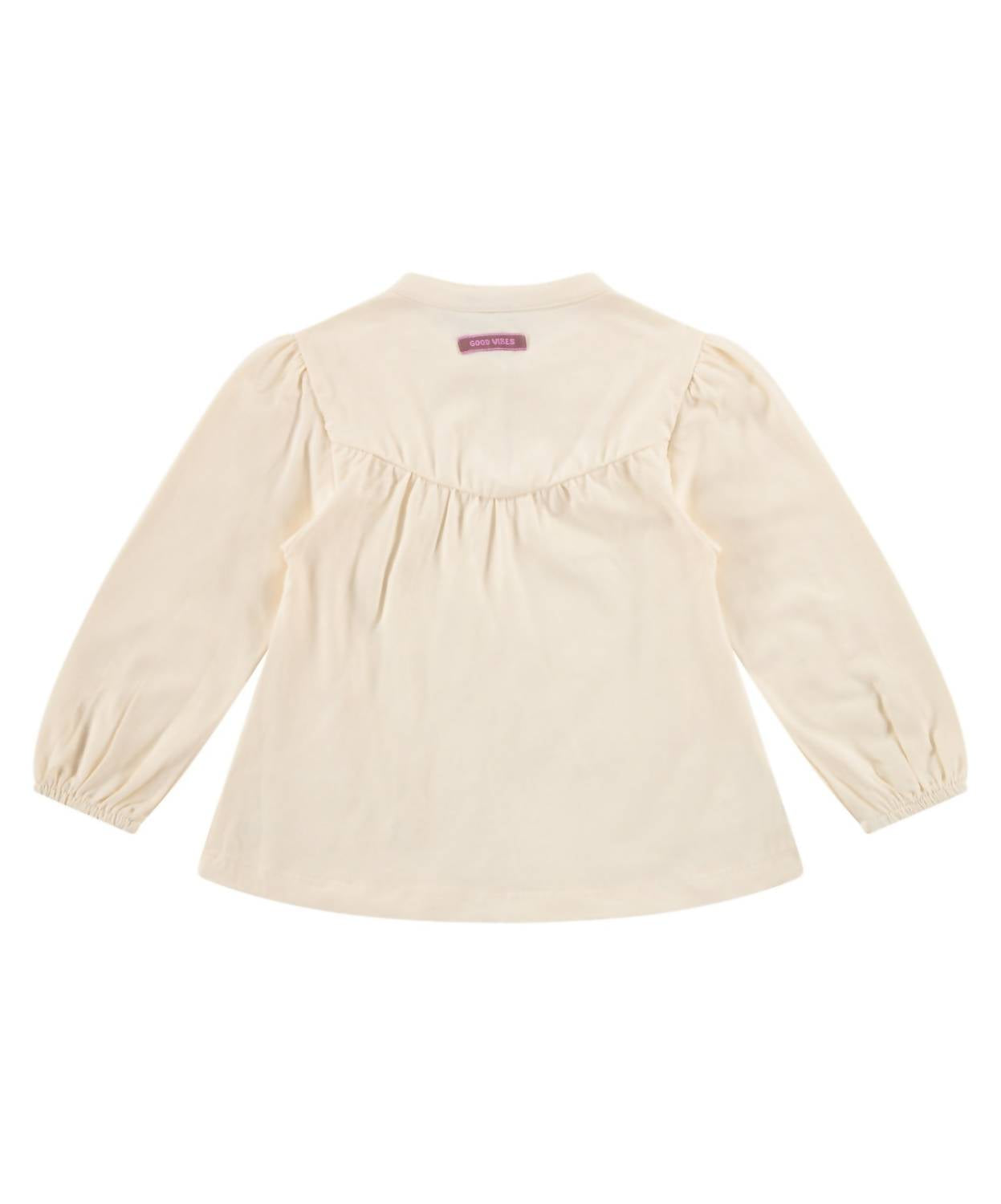 A versatile blouse that works from desk to dinner! The Girls' Peasant Long Sleeve Tee by babyface is a charming addition to any wardrobe with its minimalist style in a solid creme color. Crafted from a lightweight and breathable cotton blend, this top features long sleeves with elastic-banded hems and delicate ruching detail on tiny puff shoulders. It includes a high neck with a slit opening and a single button closure, enhancing its dressy appeal. Made from 95% BCI Cotton and 5% Elastane, this tee is easy to maintain with machine wash cold, hang dry, and a cool iron inside out for care instructions.