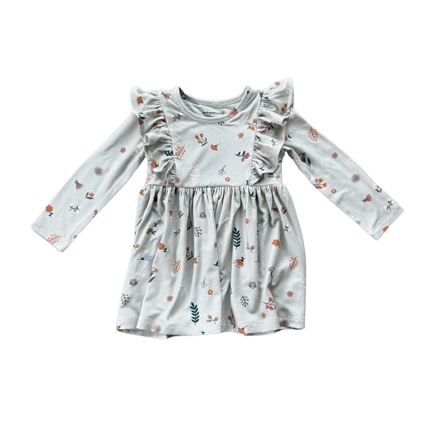 Introducing the Long Sleeve Ruffle Dress by Babysprouts, a blend of elegance and practicality crafted for versatility. This dress is made from a premium viscose blend with 95% Viscose Bamboo and 5% Spandex, ensuring comfort and breathability for all-day wear. Adorned with cascading ruffles, it’s perfect for both casual and formal occasions, adding a playful yet sophisticated touch. Available in a botanical floral pattern, this dress is machine washable and suitable for tumble dry, making it ideal for vacation and Thanksgiving festivities.