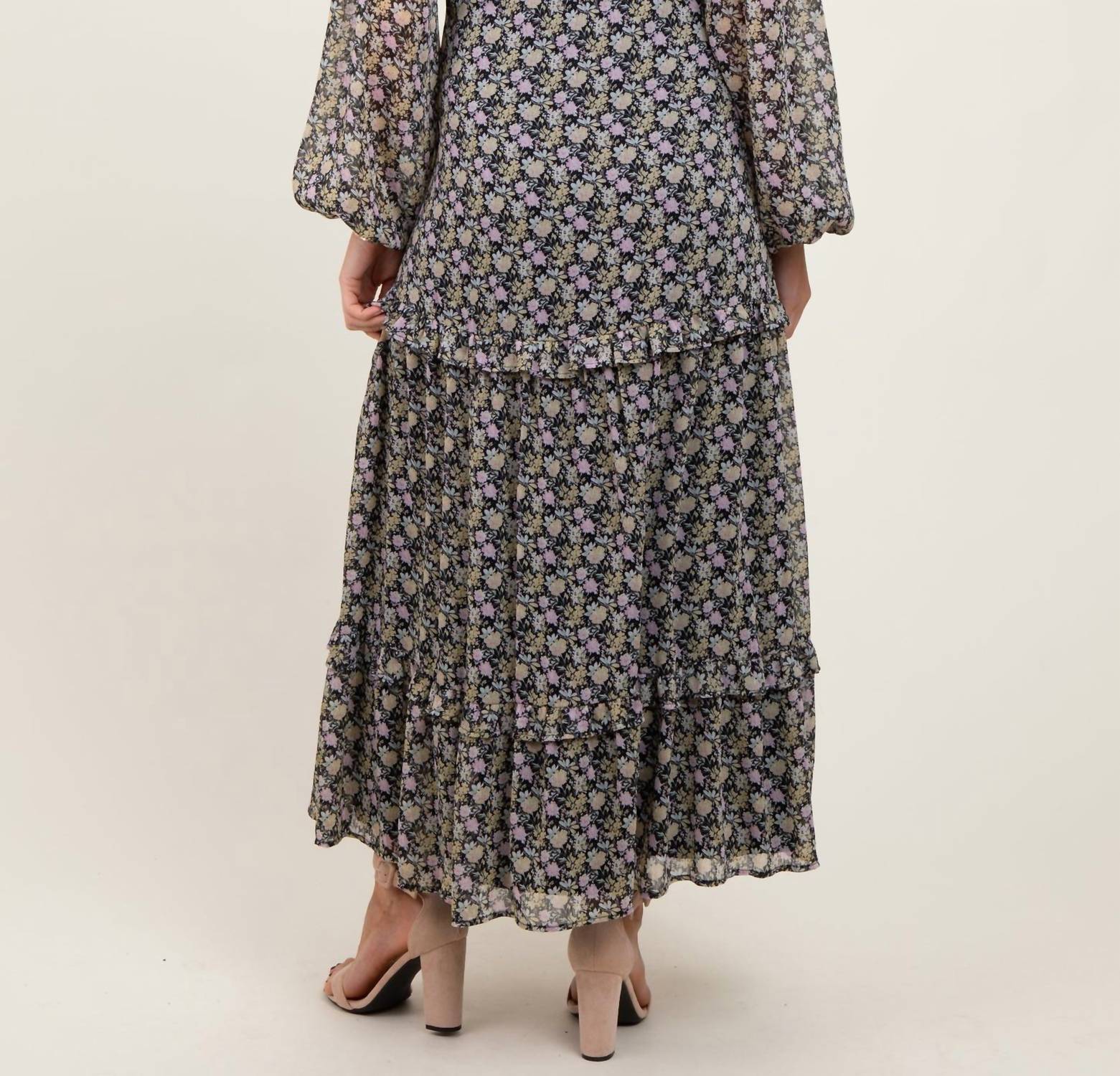 A maxi dress that is just as cute as it is comfortable. Introducing the Brynlee Floral Maxi Dress by Baevely by Wellmade, a stunning piece perfect for both day-to-night transitions. This A-line maxi dress, with its long semi-sheer balloon sleeves and deep V-neck, features a tiered skirt with a front slit. Composition: Self 100% Polyester, Fully Lined 100% Polyester. Closure: Hidden side zipper, crafted for effortless elegance in Black Multi hues. Ideal for evening events and whispered luxury occasions.