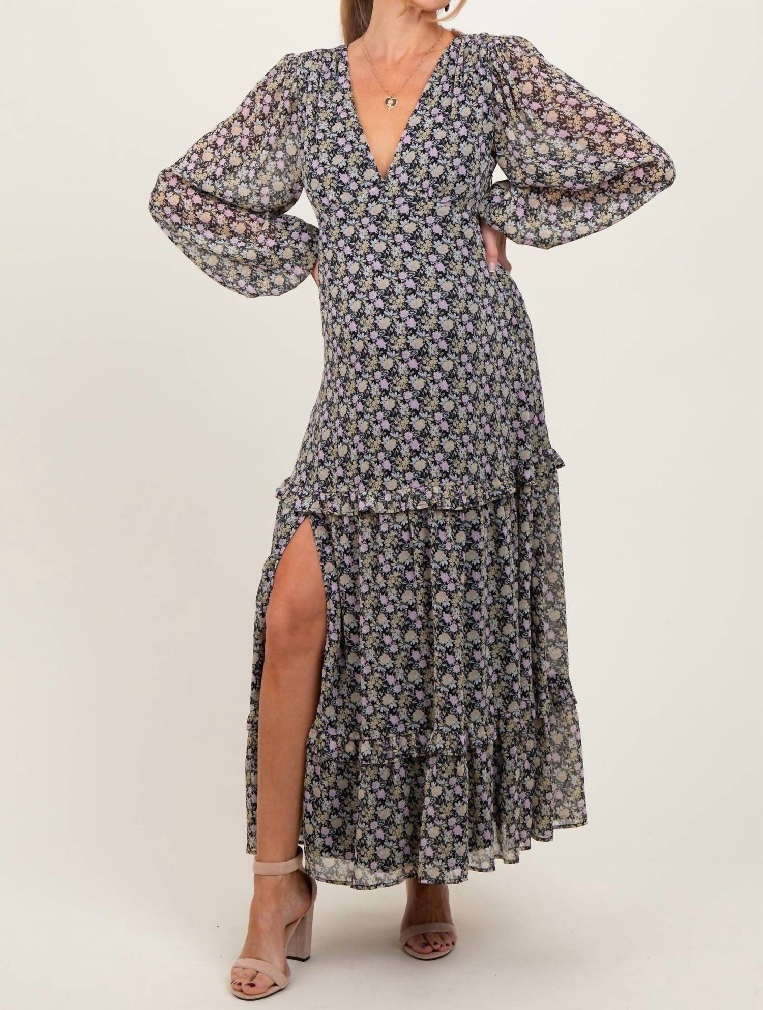 Introducing the Brynlee Floral Maxi Dress by Baevely by Wellmade, a stunning piece perfect for both day-to-night transitions. This A-line maxi dress, with its long semi-sheer balloon sleeves and deep V-neck, features a tiered skirt with a front slit. Composition: Self 100% Polyester, Fully Lined 100% Polyester. Closure: Hidden side zipper, crafted for effortless elegance in Black Multi hues. Ideal for evening events and whispered luxury occasions.