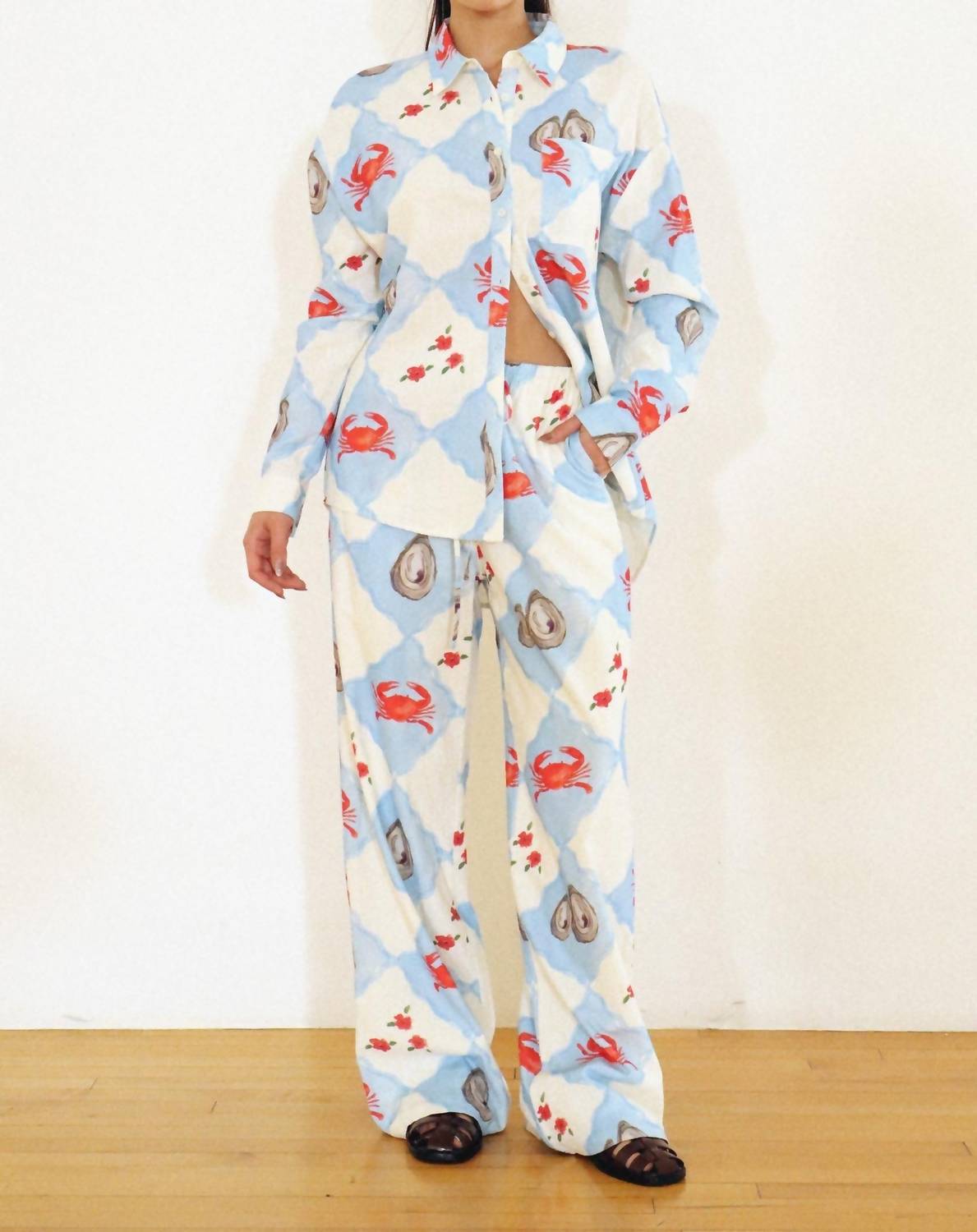 A straightleg pant that workes season after season. Dress these up with your favorite blouse or keep it casual with your go-to tee. Embrace the relaxed spirit of summer with the Coastal Charm Drawstring Pants by Bailey Rose, ideal for enlivening your wardrobe with their vibrant seaside-inspired patterns. These straight-leg pants come in a fun Blue Multi color, crafted from a comfortable cotton blend of 60% Cotton and 40% Polyester with a lining of 100% Rayon. Designed with practical pockets, they have a convenient pull-on closure and are made in China. Care for these patterned pants by hand washing in cold water to maintain their coastal allure.