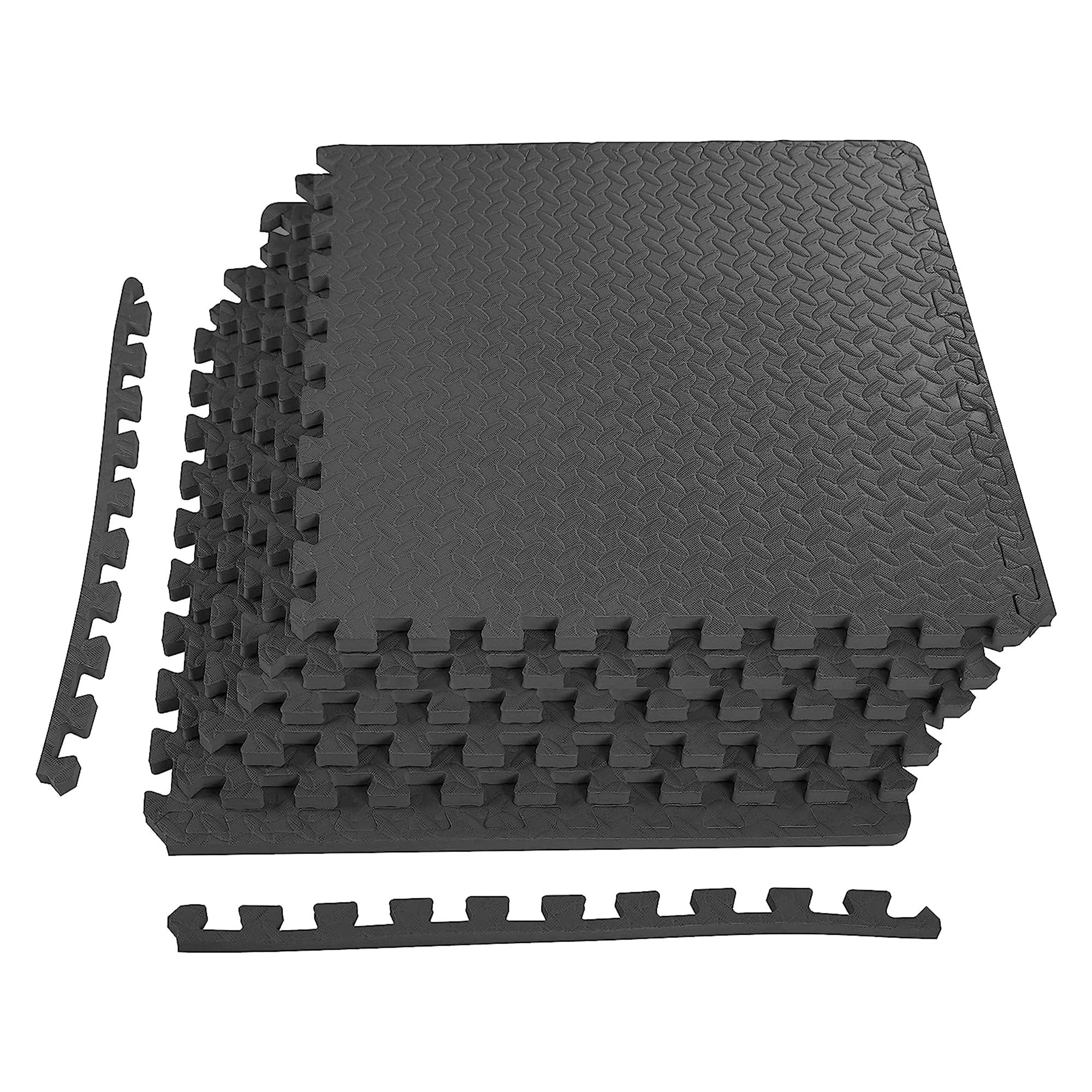 The lightweight design makes setting up in your home, gym, or daycare a breeze. With 6 24 x 24-inch exercise tiles with interlocking edges and 12 end borders, you get 24 square feet of durable support.