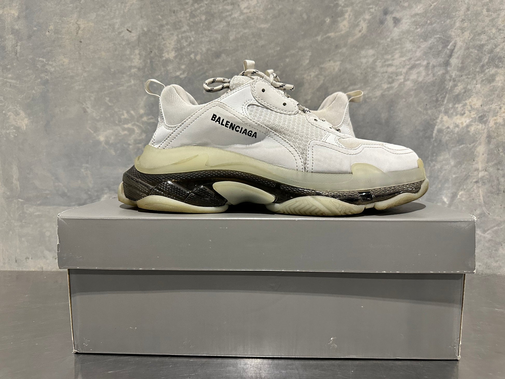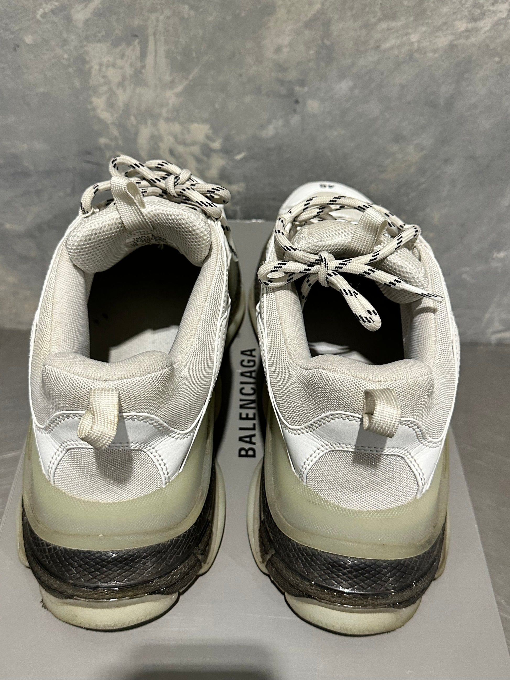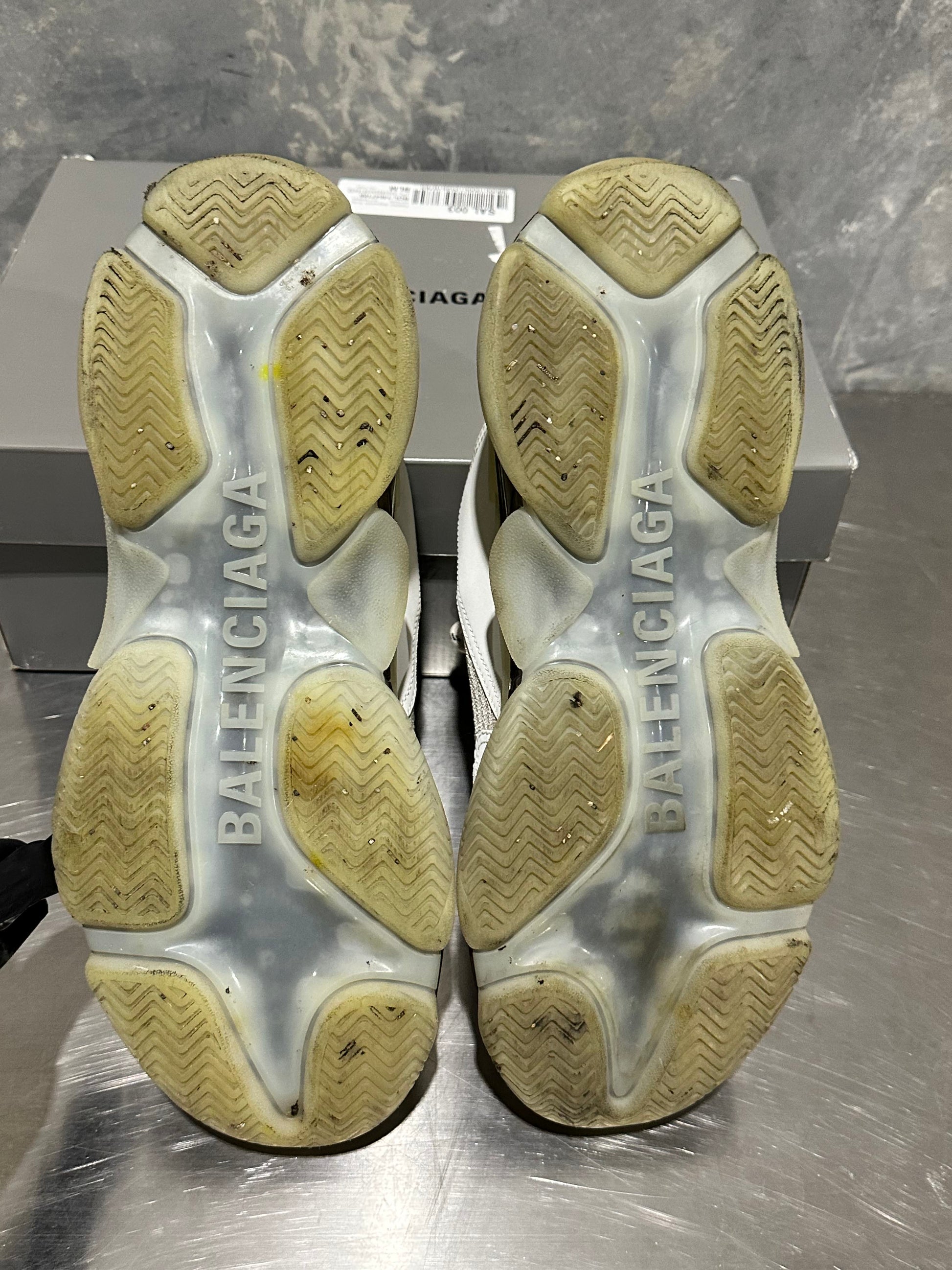 Balenciaga Men's Triple S Clear Sole Low Top Sneakers White Size 13