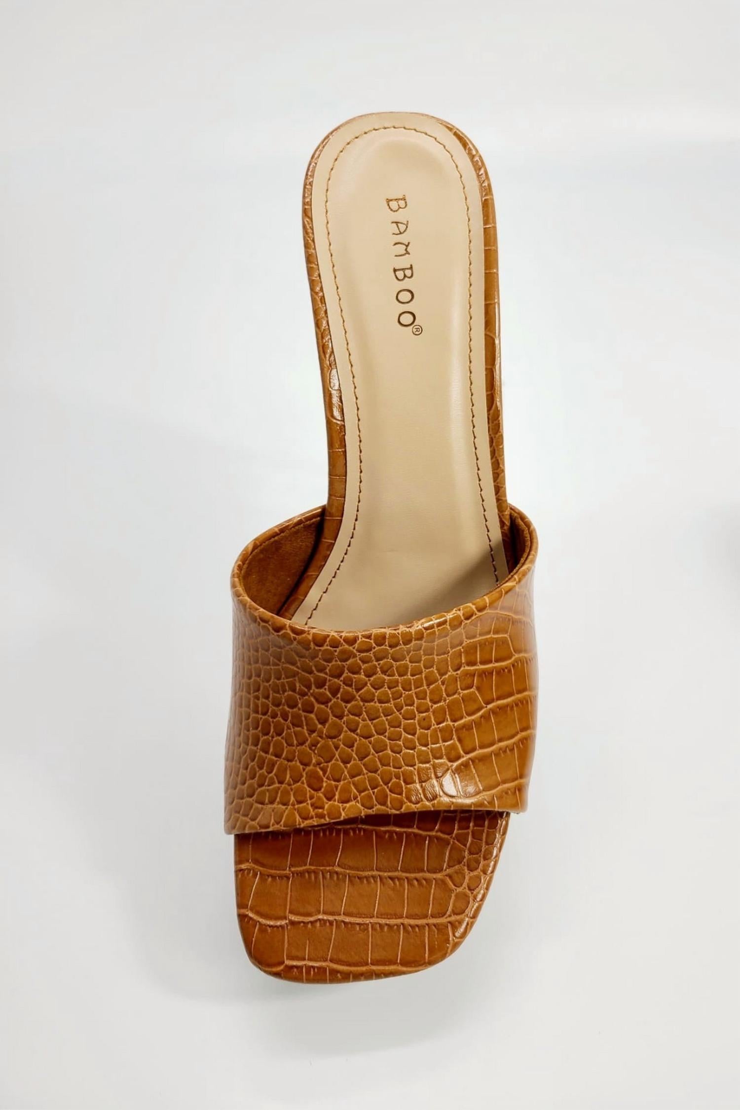 The perfect height for day to night. Step into comfort and style with the Women's Selena Heel by Bamboo, featuring a chic peep toe and on-trend wedge heel. The elegant snake skin design in chestnut offers a touch of quiet luxury perfect for Mother's Day or birthday celebrations. This heel promises to enhance any outfit, leaving a lasting impression at any event.