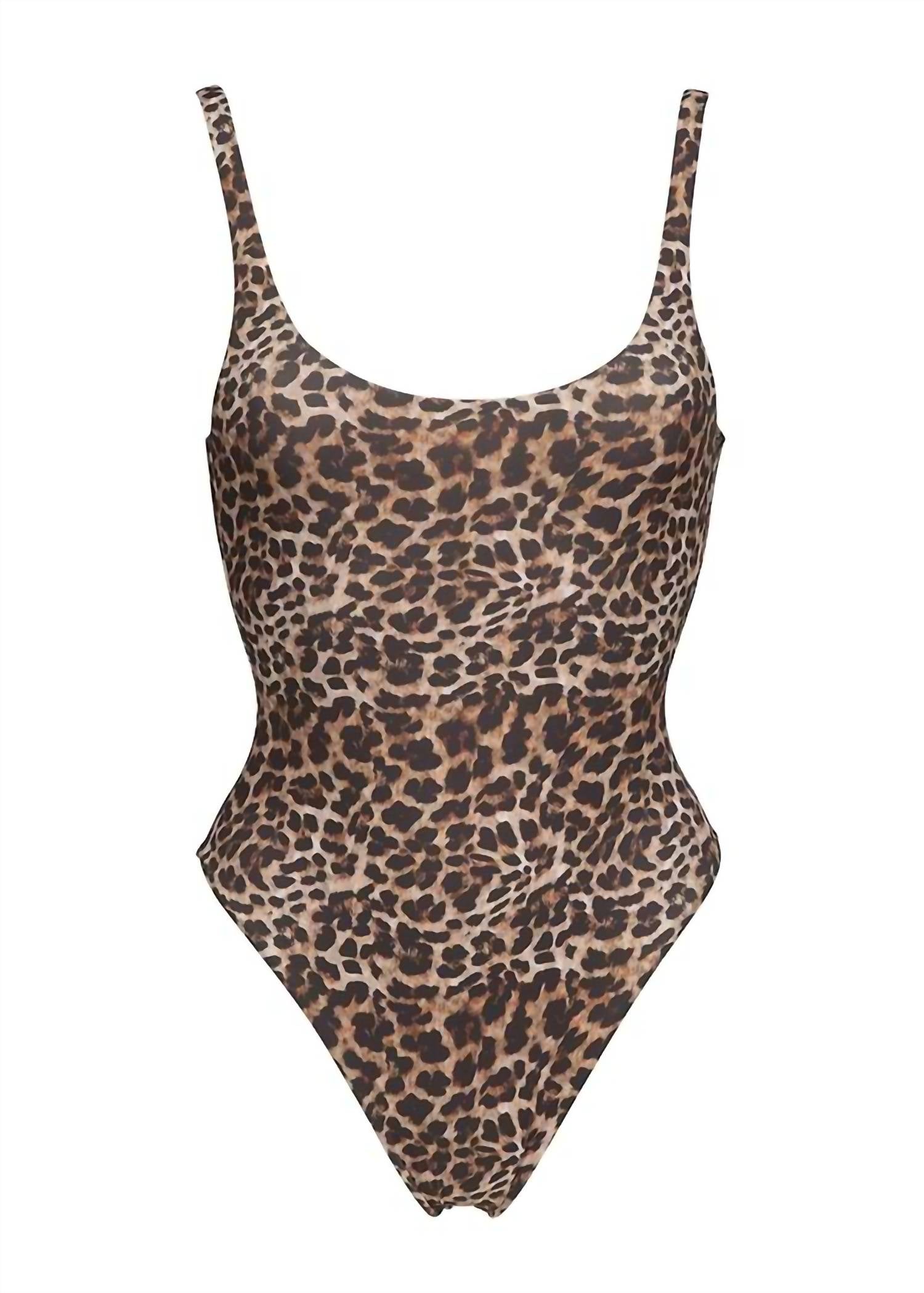 A one piece so chic you could even wear it as a bodysuit with your favorite pair of jeans. Unleash your wild side with the Pariana One Piece Swimsuit by Bananhot in a striking Leopard Dream print. This women's swimsuit boasts a sleek silhouette with a scoop neckline, thin shoulder straps, and a high-cut leg design for a flattering fit that lengthens the body. Made from 83% polyester and 17% elastane, it offers a comfortable stretch perfect for summer outings by the beach or pool. Care: Hand wash and line dry. Model wears a size XS.
