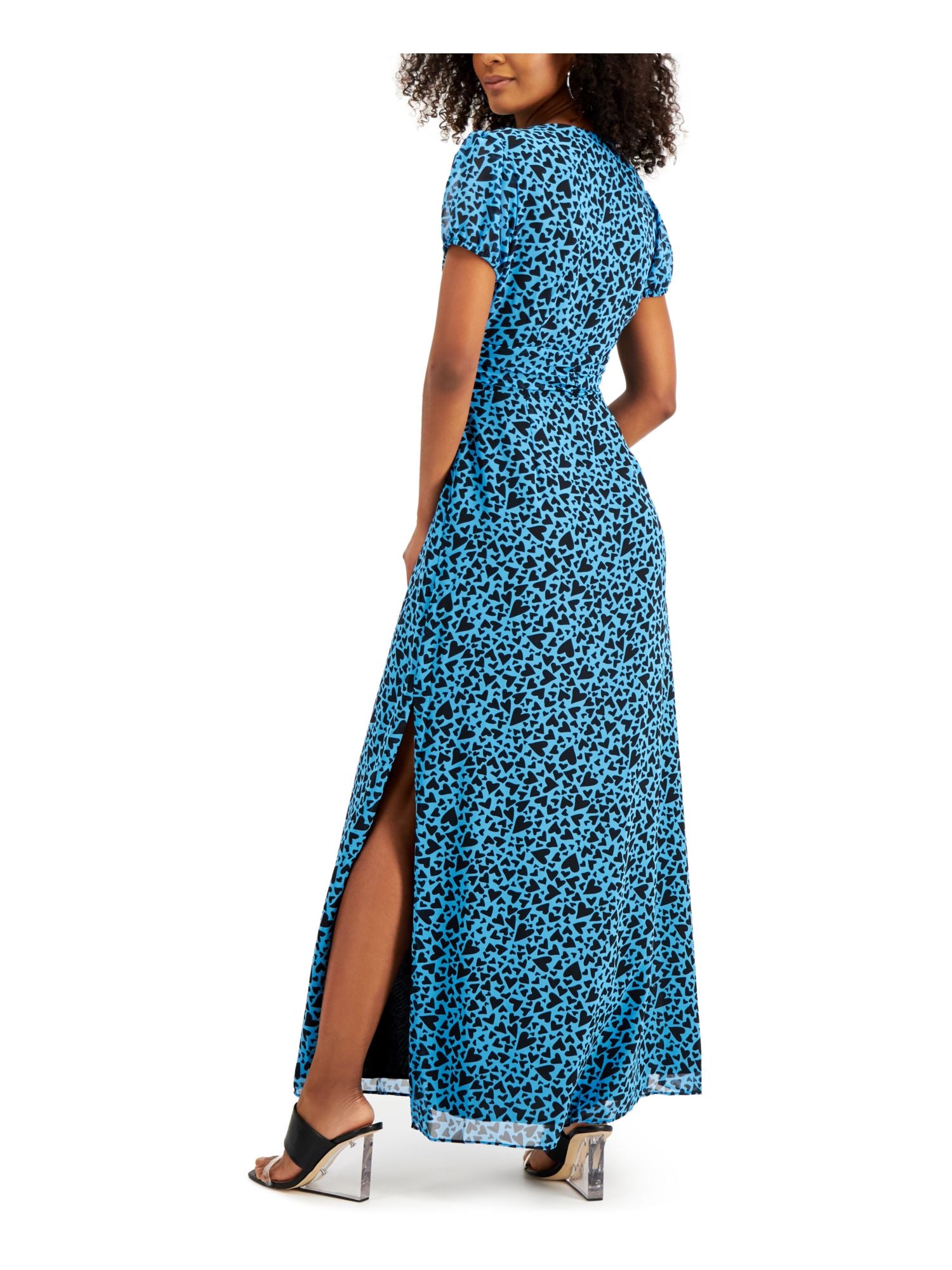 Bar III Heart-Print Ruched-Waist Dress Flutter Heart Blue M