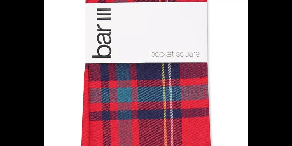 Bar III Men's Abby Plaid Pocket Square Red Size Regular