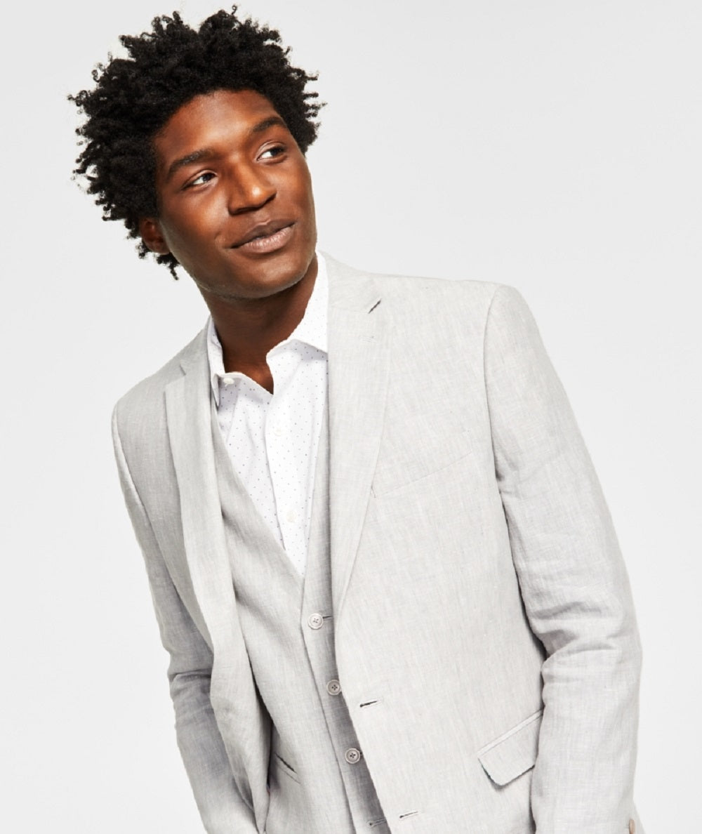 Bar III Men's Slim Fit Textured Linen Suit Separate Jacket Gray Size 42