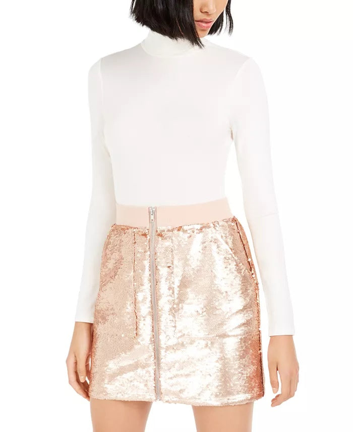 Bar III Women's Becca Tilley X Turtleneck Bodysuit Natural Size X-Large