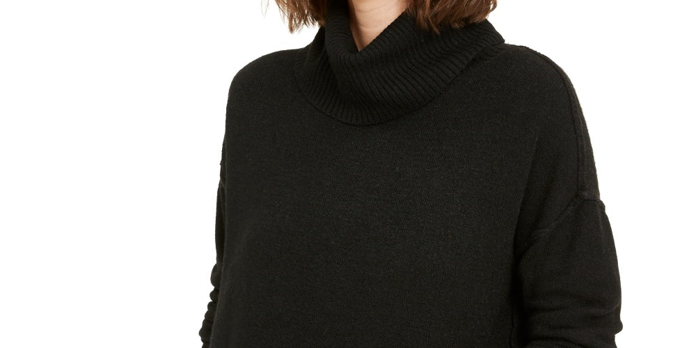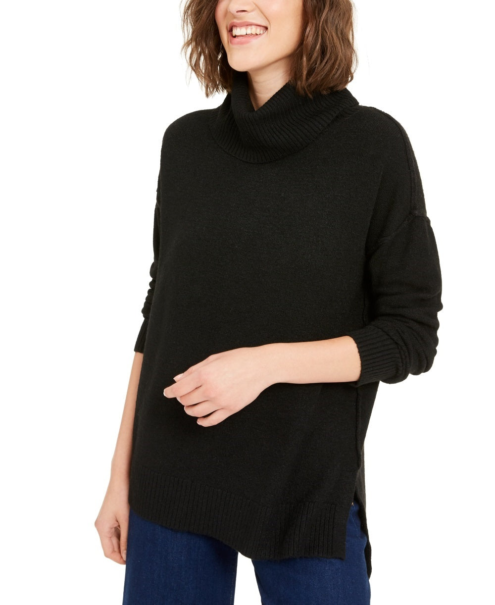 Relaxed fit; approx. length: 25" at front; 27-3/4" at back|Ribbed turtleneck|High-low hemline with ribbed edge|Drop-shoulder long sleeves with shoulder seam detail and ribbed cuffs