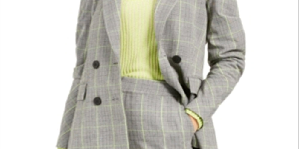 Bar III Women's Double Breasted Plaid Blazer Wear to Work Jacket Gray Size Medium