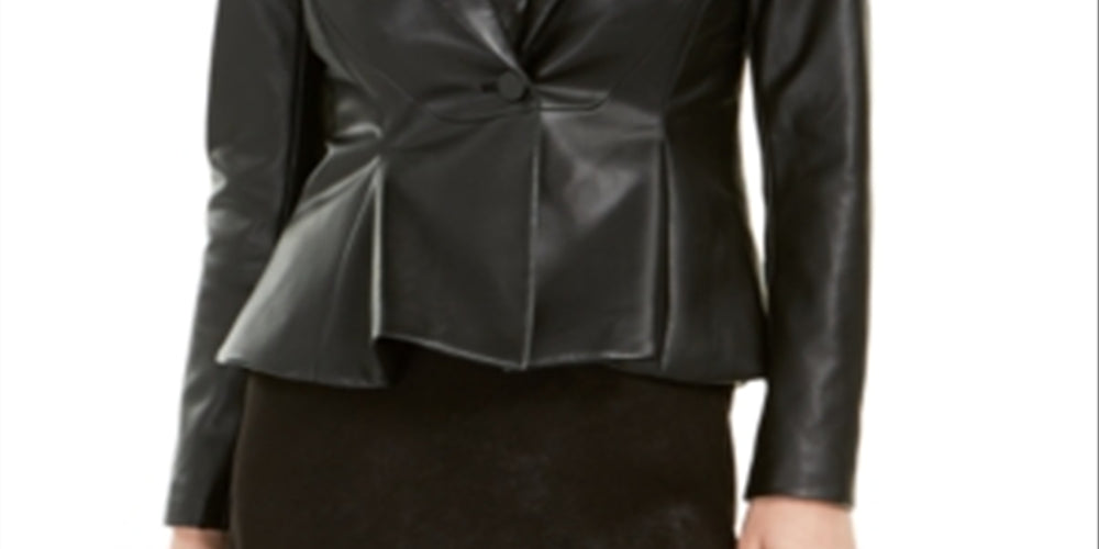Bar III Women's Faux Leather Peplum Jacket Black Size 2