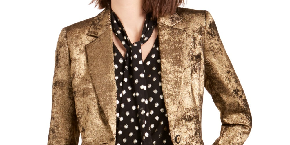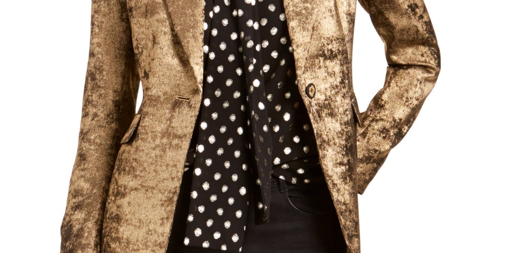 Bar III Women's Metallic One Button Blazer Gold Size 2