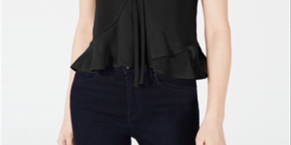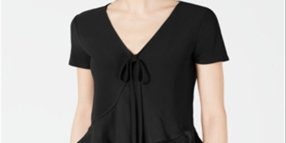 Bar III Women's Mixed Media Tie Front Blouse Black Size Medium