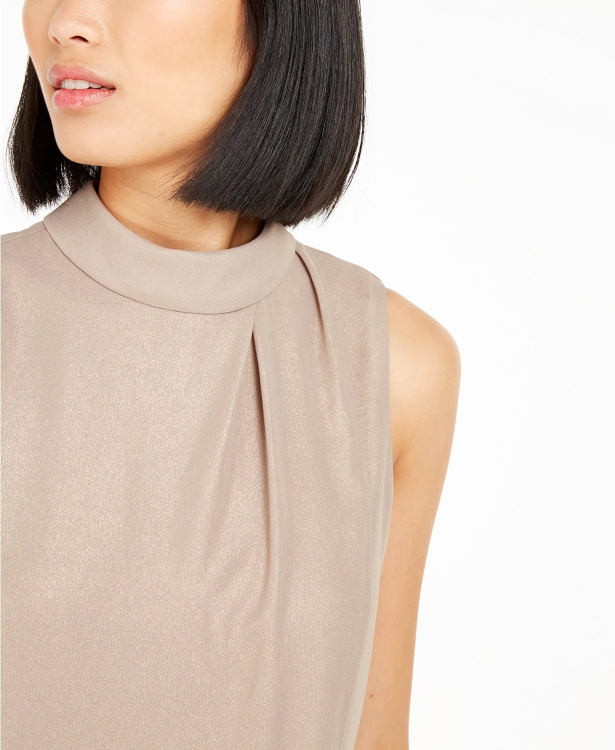 Bar III Women's Mock Neck Pleated Tank Top Gold Size Small