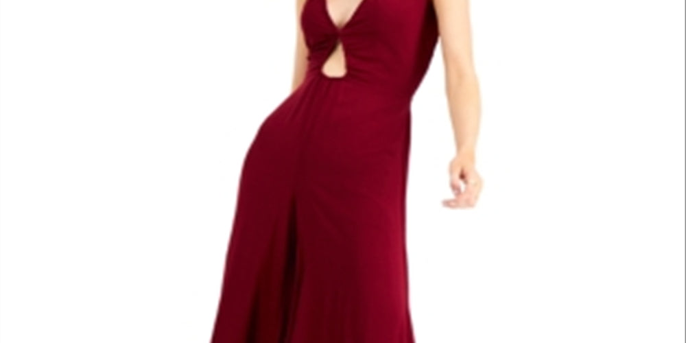 Bar III Women's Peekaboo Cutout Jumpsuit Maroon Size Small