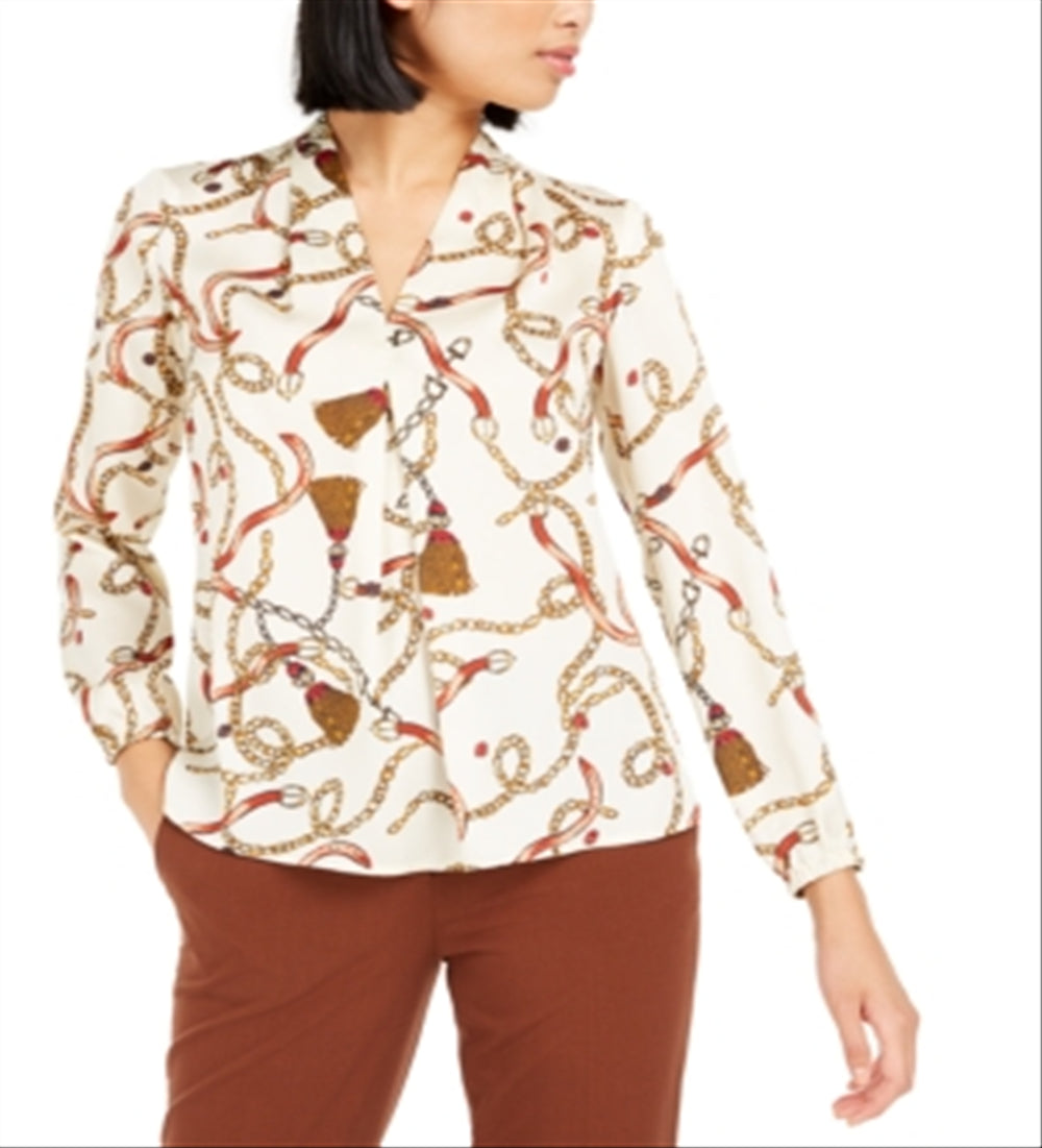 Bar III Women's Printed Pleated Top Brown Size XX-Small