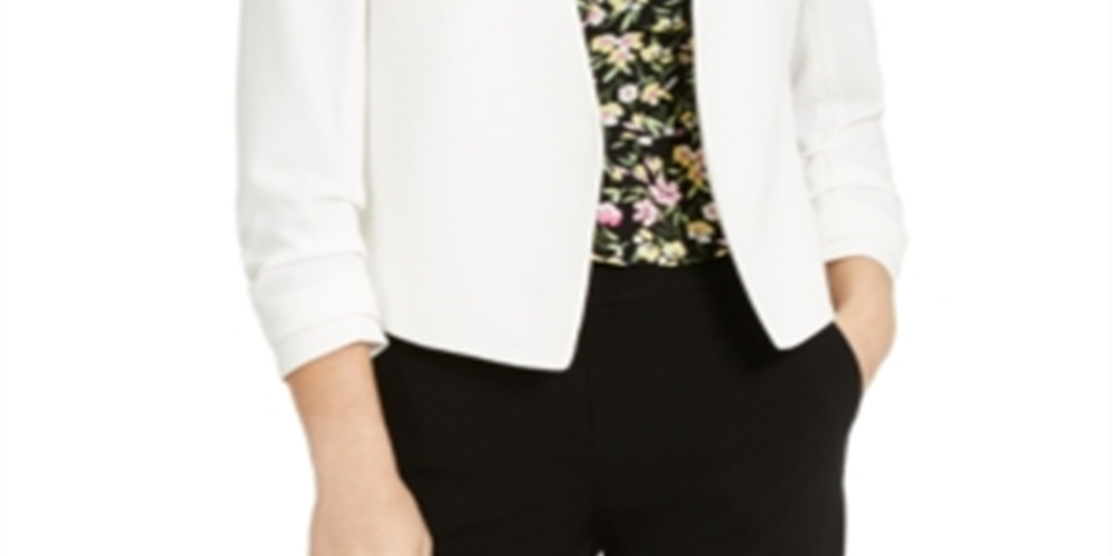 Bar III Women's Ruched Sleeve Jacket White Size Medium