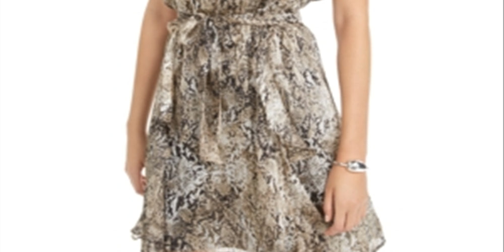 Bar III Women's Ruffled Snake Embossed Mini Dress Brown Size Medium