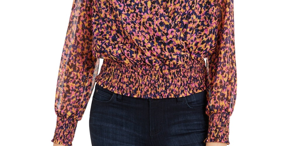 Bar III Women's Smocked Surplice Top Purple Size Small