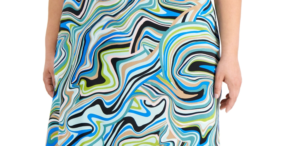 Bar III Women's Swirl Print Midi Skirt Blue Size 14W