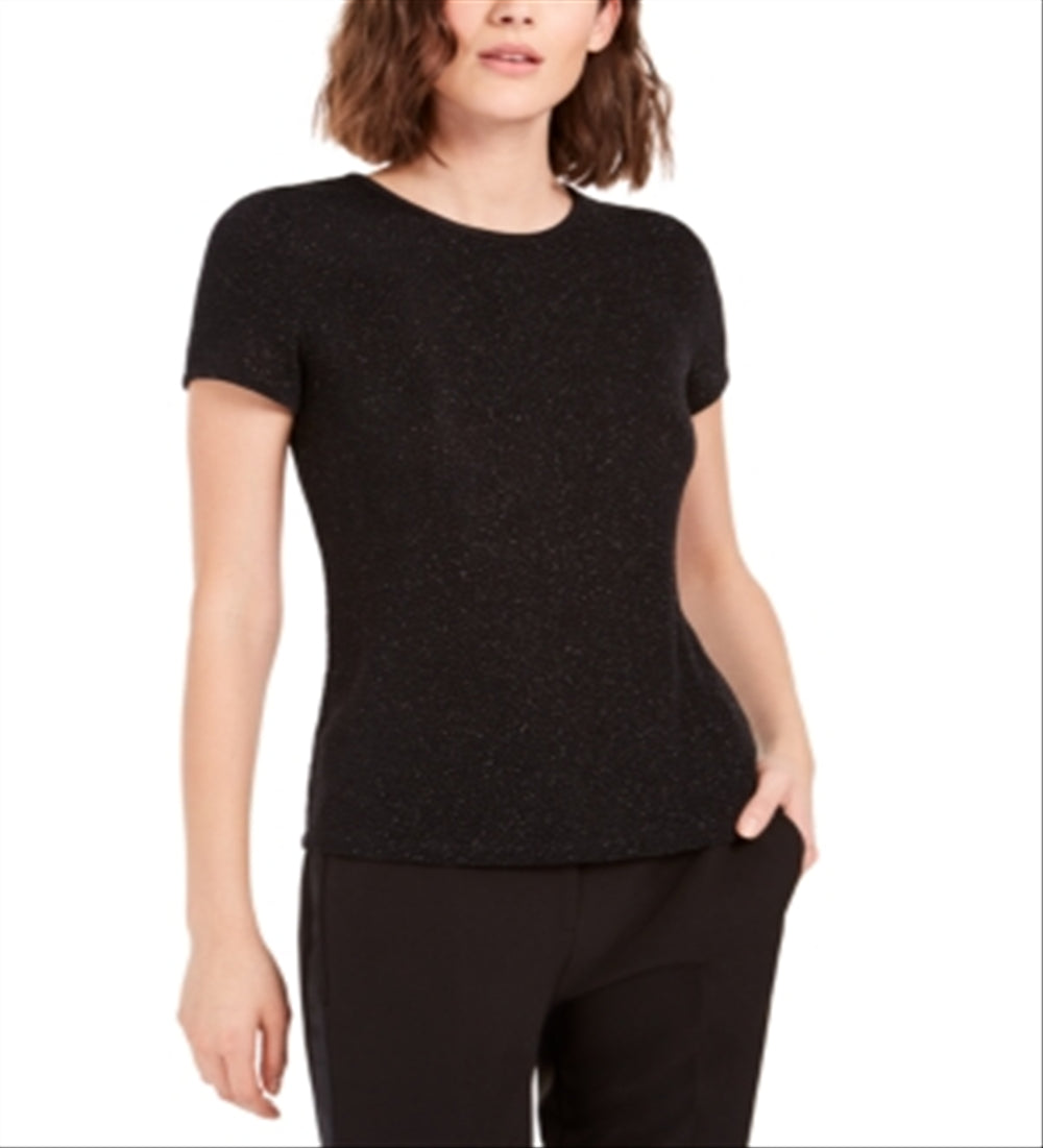 Bar III Women s Textured Sparkle Top (M Black) Hand wash Short Sleeve Style; Blouse Size Type; Regular