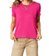 This solid tee is crafted from a blend of 95% rayon and 5% spandex, ensures a comfortable and slightly stretchy fit. Featuring a crewneck and pull-on closure, it promises both ease and style for everyday wear. Enjoy effortless maintenance with a machine wash cold and tumble dry, maintaining its shape and softness wash after wash.