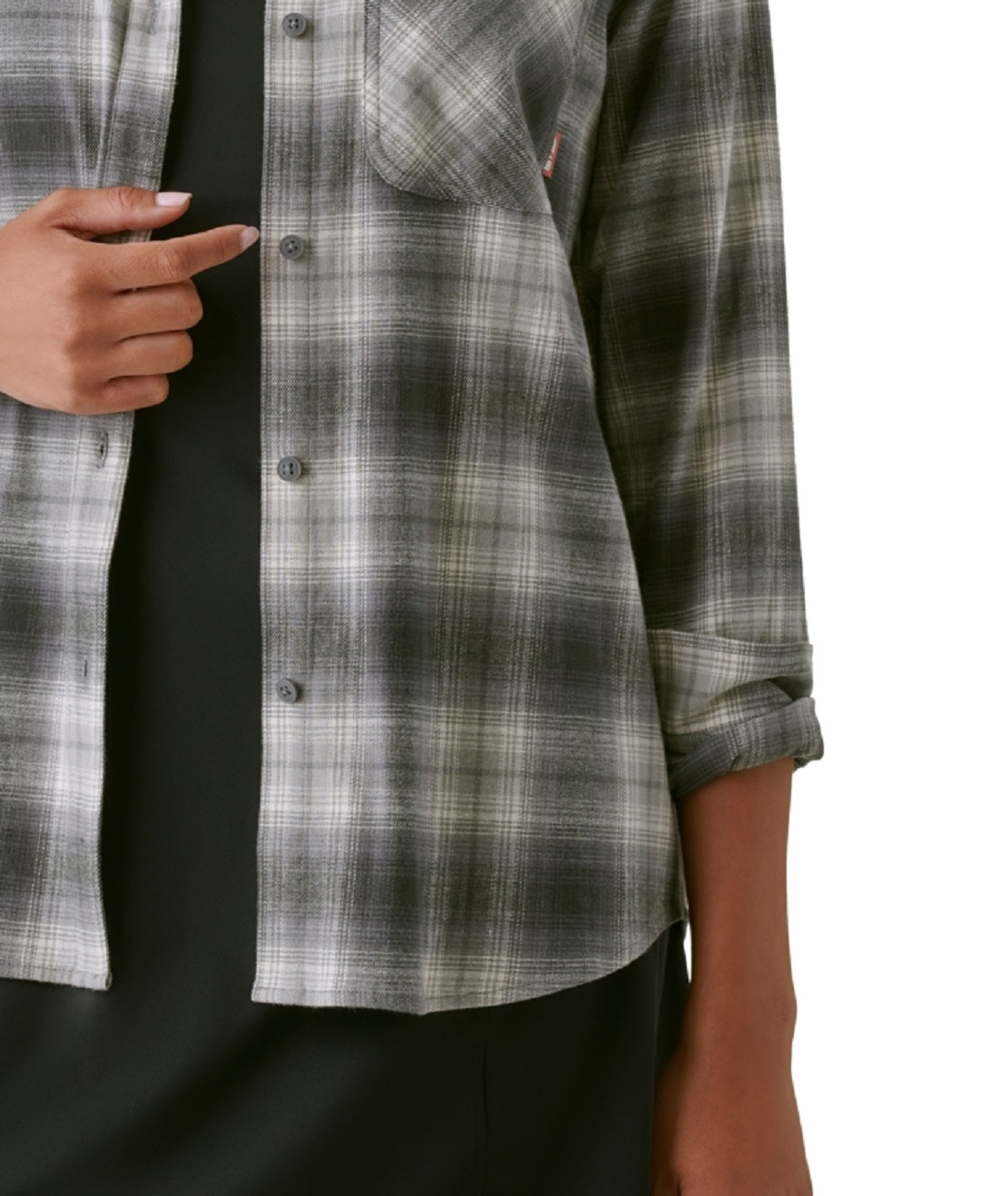 Bass Outdoor Women's Expedition Stretch Flannel Shirt Gray Size Large
