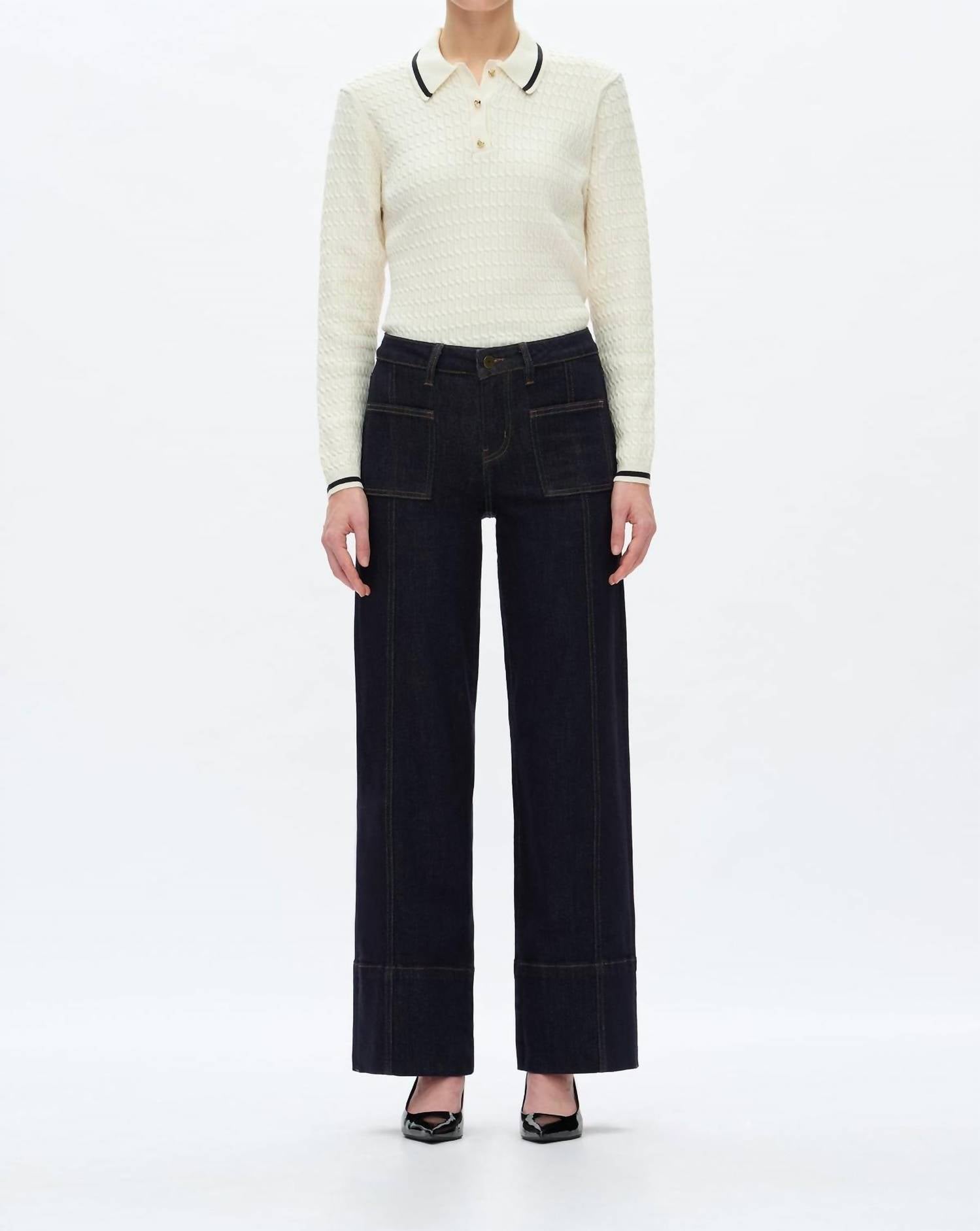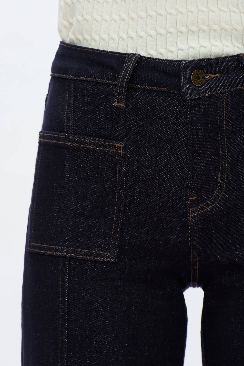 Pair these wide leg jeans with mules, slides or your favorite strappy sandals. Embrace the 90s fashion trend with the Bayeas Katia Mid Rise Wide Leg Pants in a chic rinse wash. These wide-leg jeans are crafted from a cotton blend for a relaxed fit, featuring front patch pockets and vertical stitching below the waistband. The mid-rise design, complemented by a button closure, offers an inseam of 32 inches and a rise of 9 1/2 inches. Easy to care for, simply machine wash inside out, tumble dry low, and iron warm if needed. 94% Cotton, 5% Polyester, 1% Spandex.
