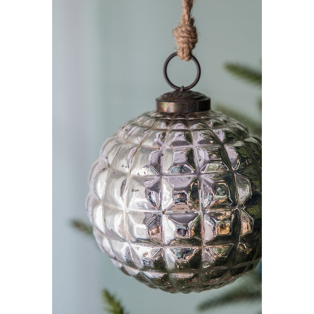 Add this designer silver glass ornament to your holiday collection and let your décor gleam with artistic style and timeless sophistication.