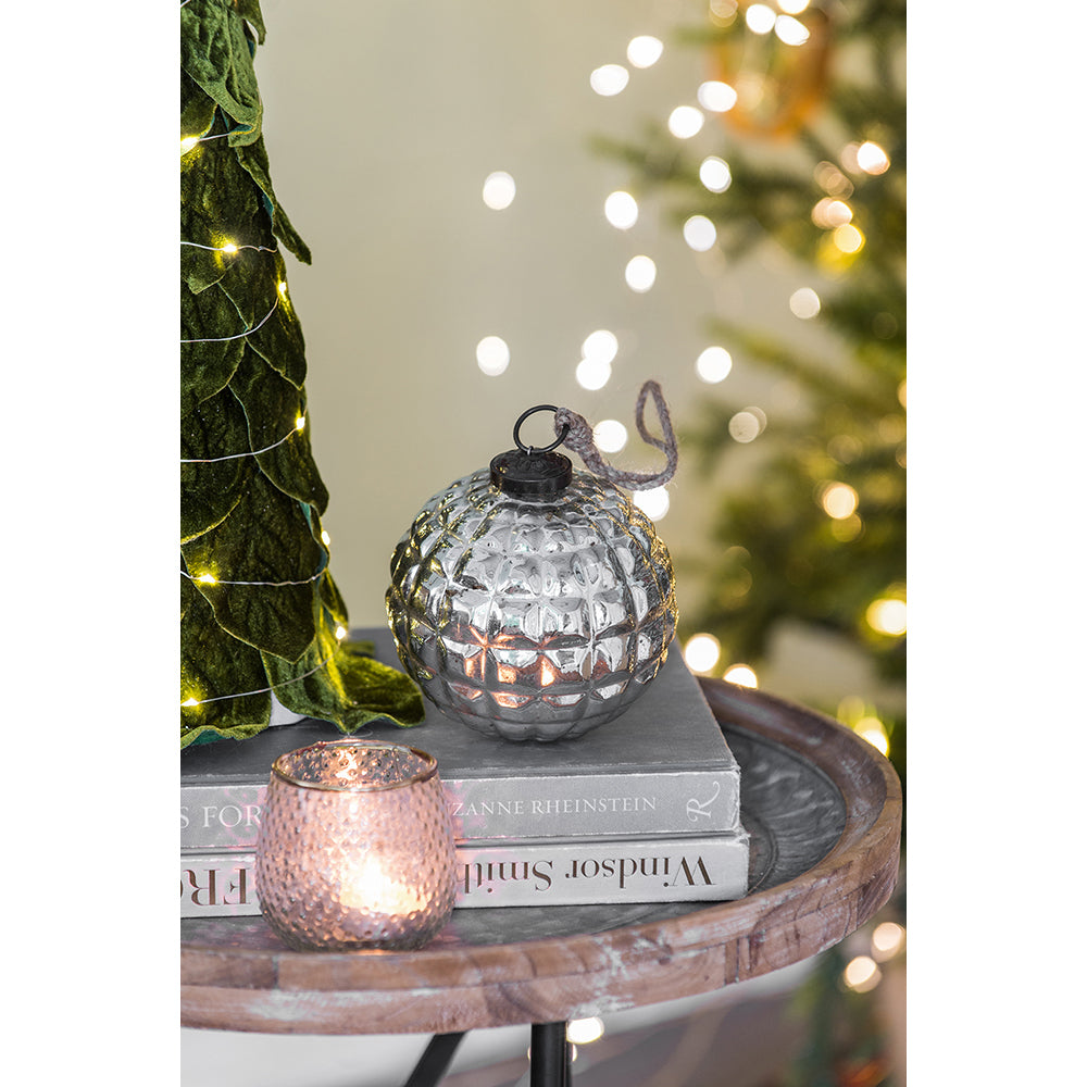 Bring sophistication and sparkle to your holiday décor with the Silver Glass Ornament Ball, designed by Riccardo. Crafted with artistic precision, this ornament captures light beautifully—its reflective silver finish adding an air of luxury and timeless charm to your Christmas tree or festive displays. Whether adorning branches, enhancing a garland, or serving as a table centerpiece accent, this piece transforms your home into a scene of refined celebration.