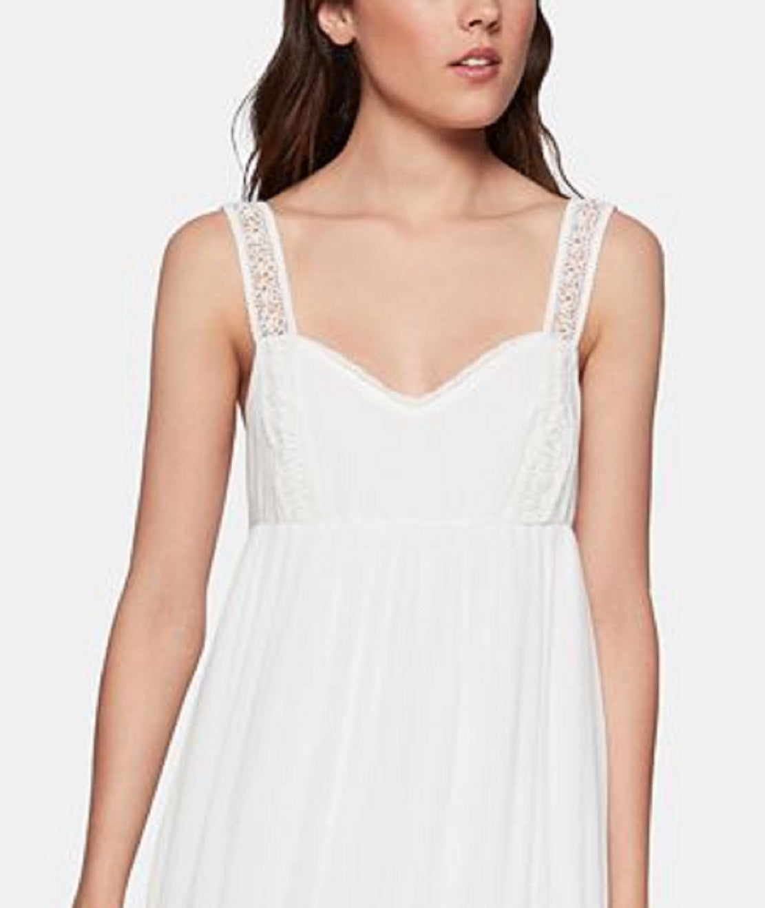 Crochet trim adds a sweet retro vibe to BCBGeneration's breezy| lingerie-inspired shift dress with an empire waist and cutout back. | Pullover styling| Sweetheart neckline| Elasticized back opening; crochet trim throughout; empire waist; cutout back| Style #TEB6210591| A-line silhouette