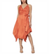 BCBGMaxazria Women's Satin Handkerchief Hem Wrap Dress Orange Size M