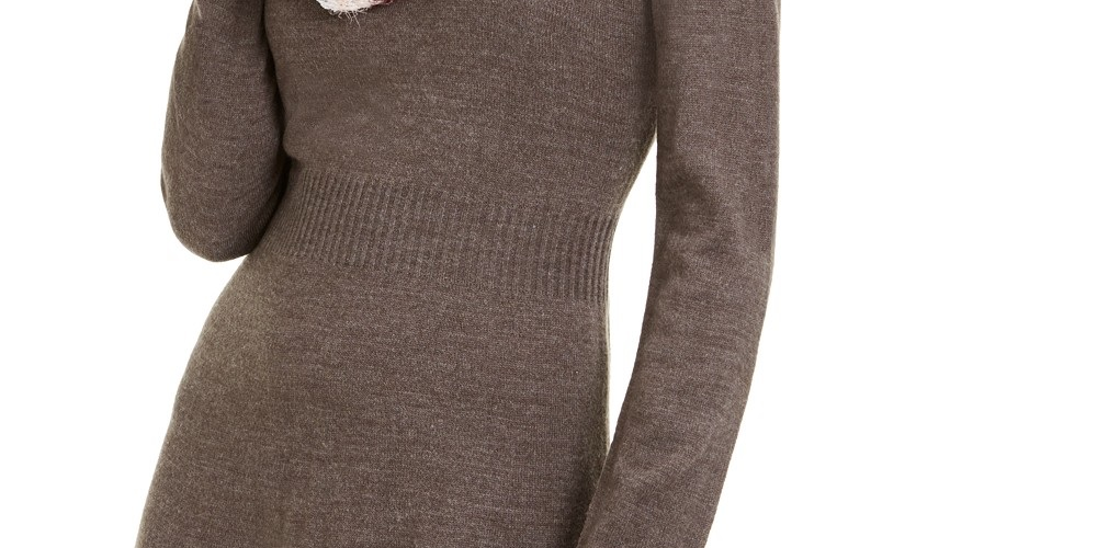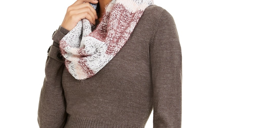 Approx. model height is 5'10" and she is wearing a size medium|Approx. 35" long from center back neck to hem. Length is based on size medium and varies 1/2" between sizes|Scoop neckline; A-line silhouette|Pullover styling|2 button tabs at cuffs|Removable textured striped scarf; ribbed at waist|Unlined