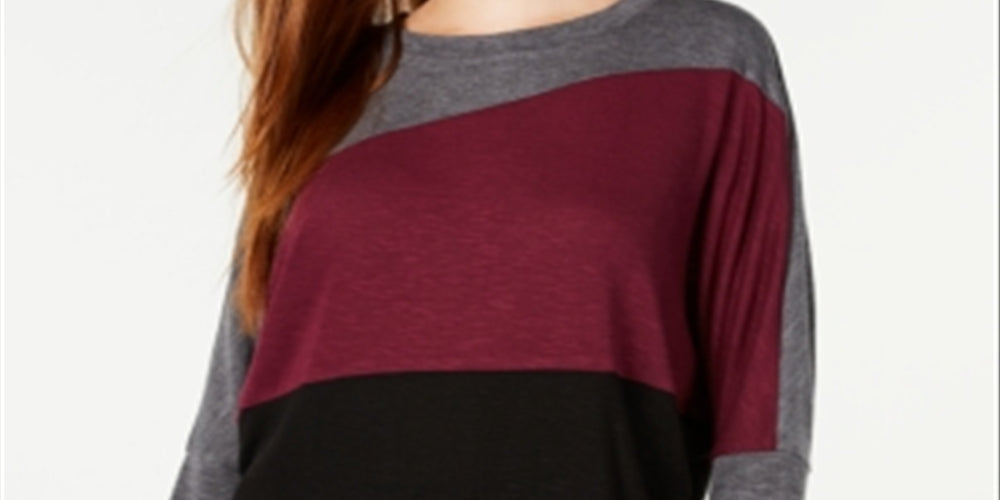 BCX Women's Colorblocked Dolman Sleeve Top Grey/Wine Size Small