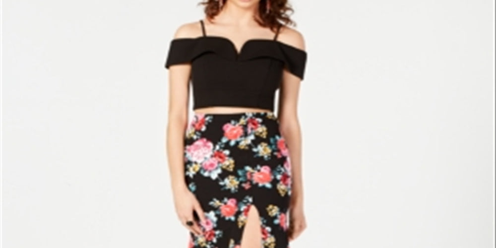 B.Darlin Women's Short Sleeve Off Shoulder Crop Top Black Size 1/2