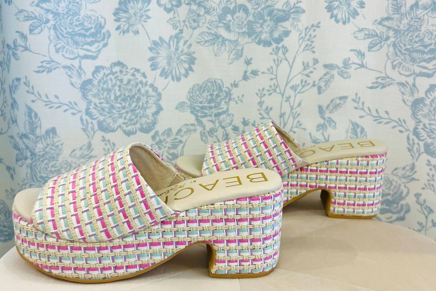 Introducing the Women's Jenny Wedge by Beach by Matisse, a captivating blend of pink, blue, and lavender, perfect for making a statement. Crafted with an open toe design, these spring season wedges bring a splash of color to your workwear and are ideal for dinner parties. The wedge heel adds both height and comfort for day-to-night style. This vibrant piece remains a standout addition to any wardrobe.