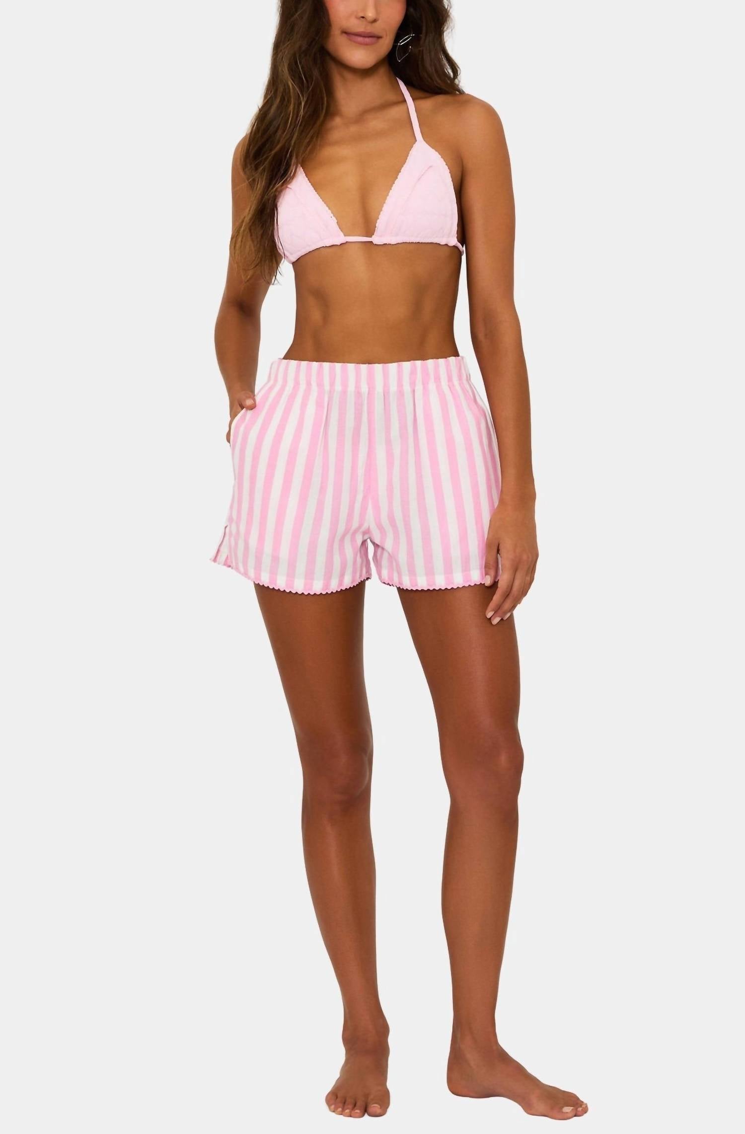 The go-anywhere and do-anything skort that you'll love to live in. Elevate your summer wardrobe with the Tia Stripe Short by Beach Riot, an eye-catching skort designed in a vibrant pink stripe pattern. Perfectly crafted for women, this skort features a convenient pull-on closure. Care instructions recommend hand washing and line drying to maintain its fresh look. The absence of pockets ensures a sleek, streamlined design.