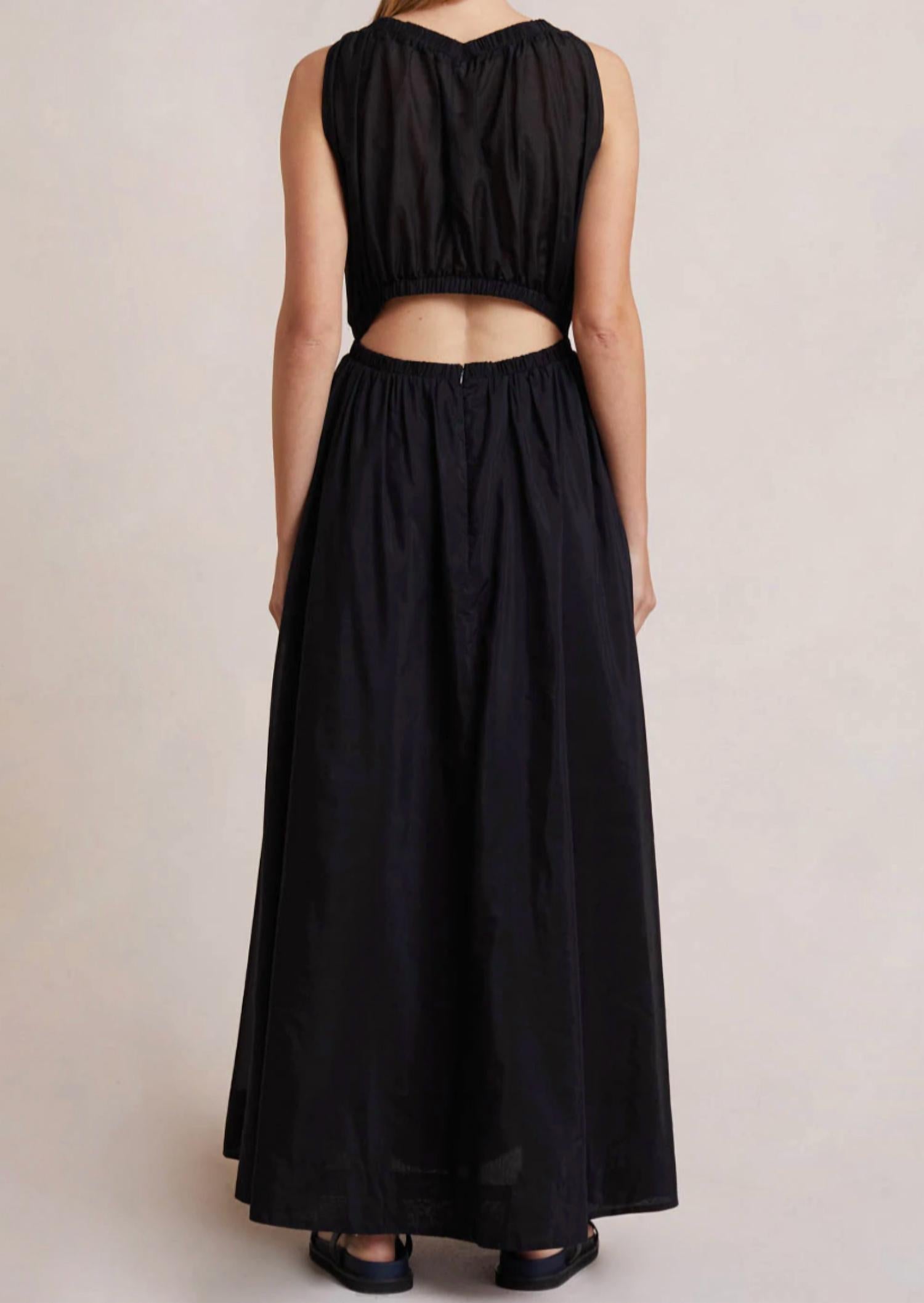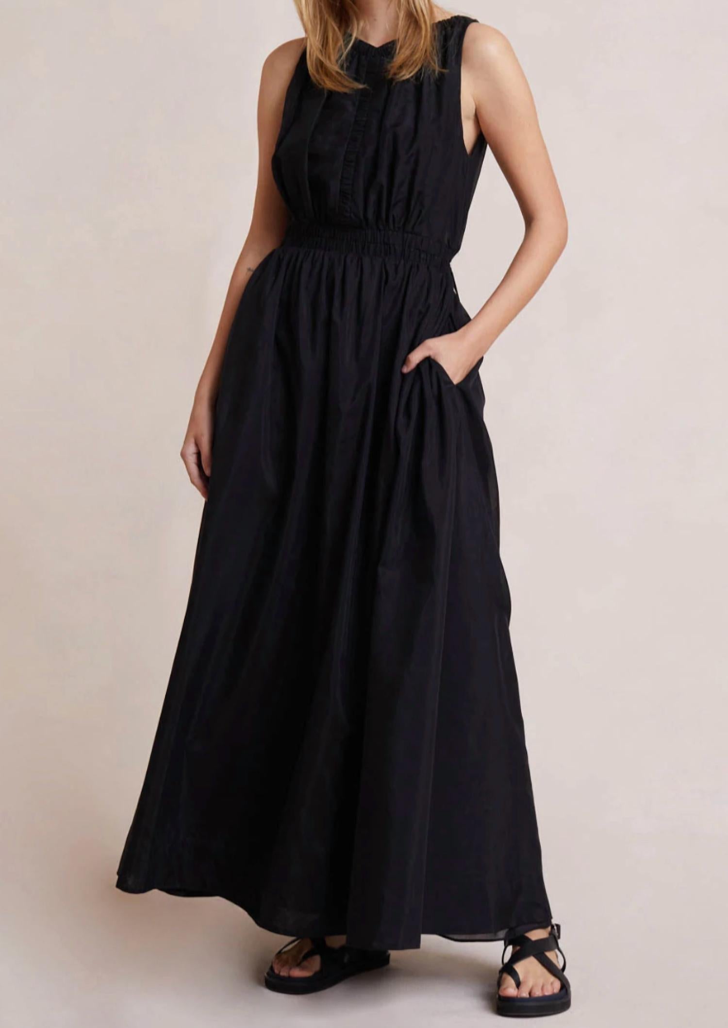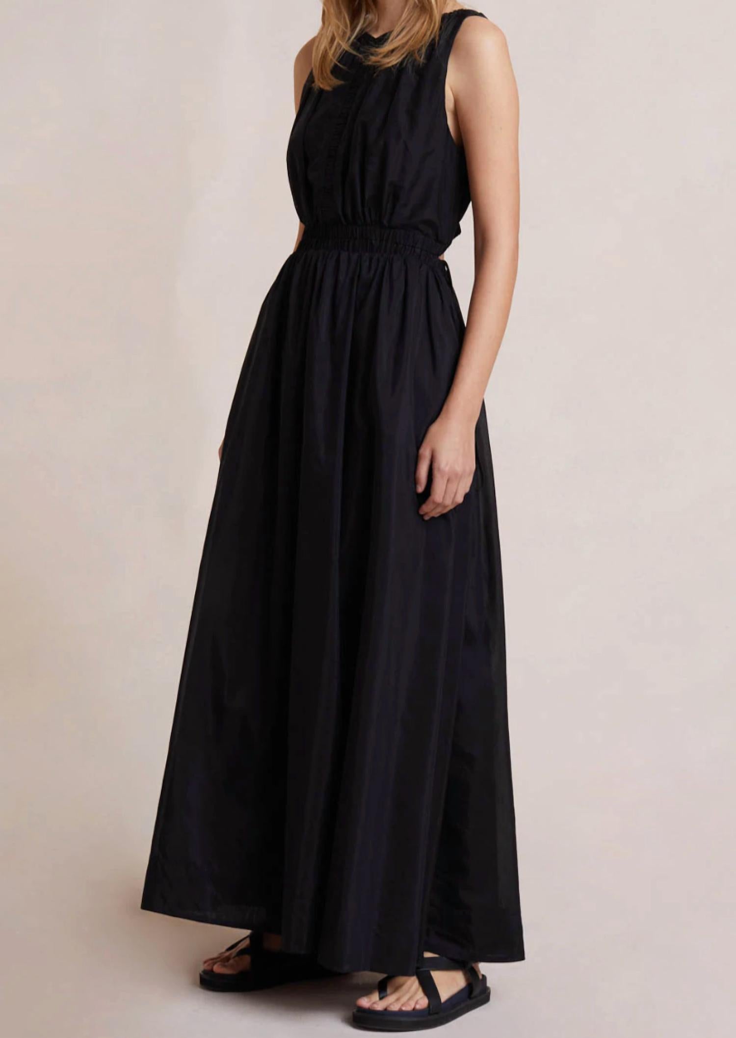 A maxi dress that is just as cute as it is comfortable. Introducing the Millie Maxi Dress by Bec + Bridge, a chic choice for your next dinner party in solid black. This sleeveless dress is made from a Cotton Blend featuring 70% cotton and 30% silk, offering a luxurious feel with a gentle stretch. Designed and made in Australia, the dress showcases a floaty A-line silhouette with a high V-neckline and convenient front side pockets. It’s tailored with an invisible back zip closure, ensuring a seamless fit. Care: Dry clean only, with a cool iron applied with a pressing cloth. Model is 178cm / 5’10” and wearing an AU 8 / US 4.