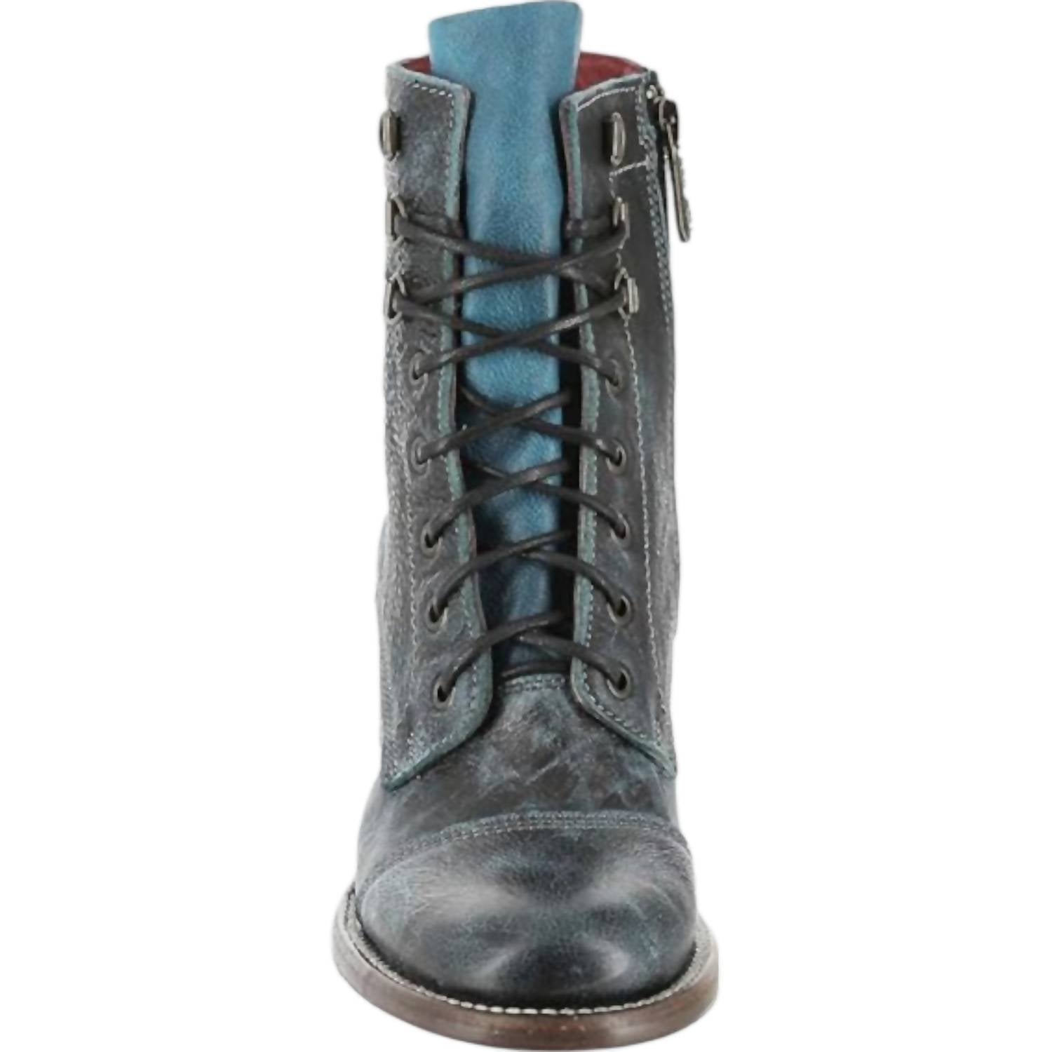 Handmade with care using chrome and formaldehyde-free, vegetable-tanned leather. Heeled combat boots feature an 8-eye lace-up design complemented by D-ring lacing at the top, an inside zip for ease, and a 6-inch shaft with a 2.5-inch stacked leather heel. Boast a resoleable Goodyear welt outsole with a Vibram panel, ensuring excellent traction. Fit guide indicates these boots run small.