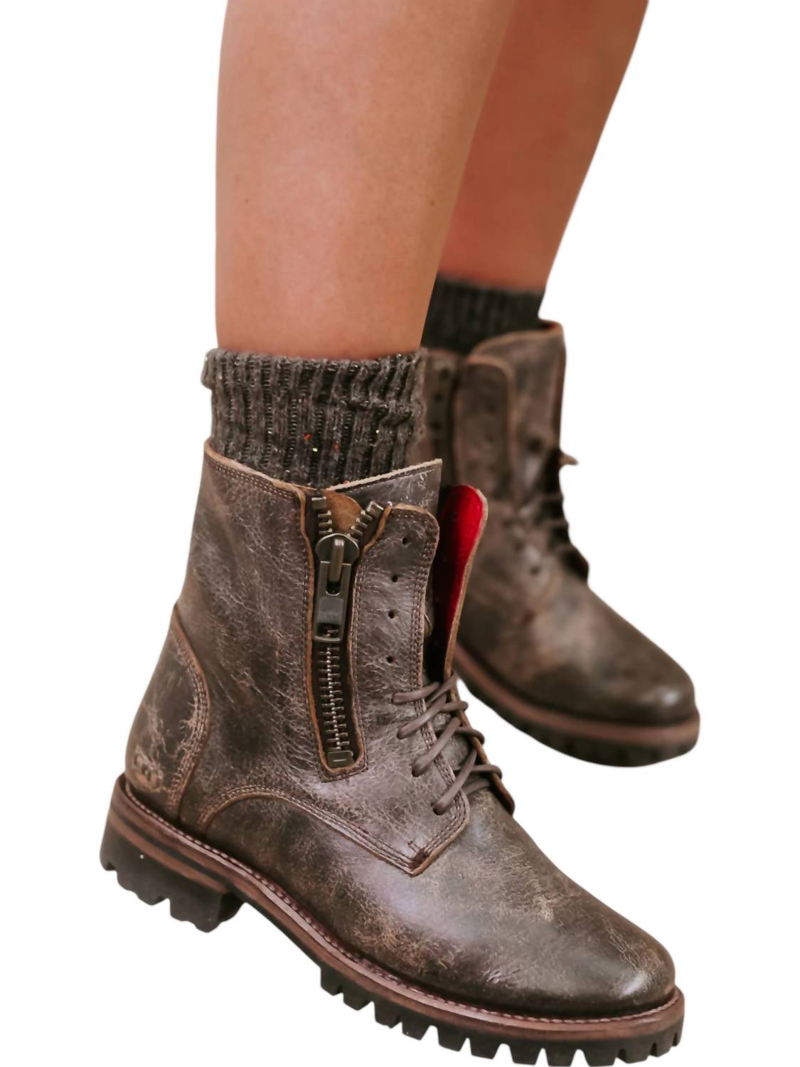 A stylish boot with a comfortable fit and the perfect amount of height. These classic boots are the perfect addition to any outfit and can be worn season after season. Chrome and formaldehyde free. Vegetable tanned leather. 8-hole lace up combat style ankle boot. Red leather lined. Dual heavy duty zip sides. 6 inch shaft. 1.5 in heel. Thick black treaded Vibram Goodyear welt leather outsole. Handmade in Leon Mexico.