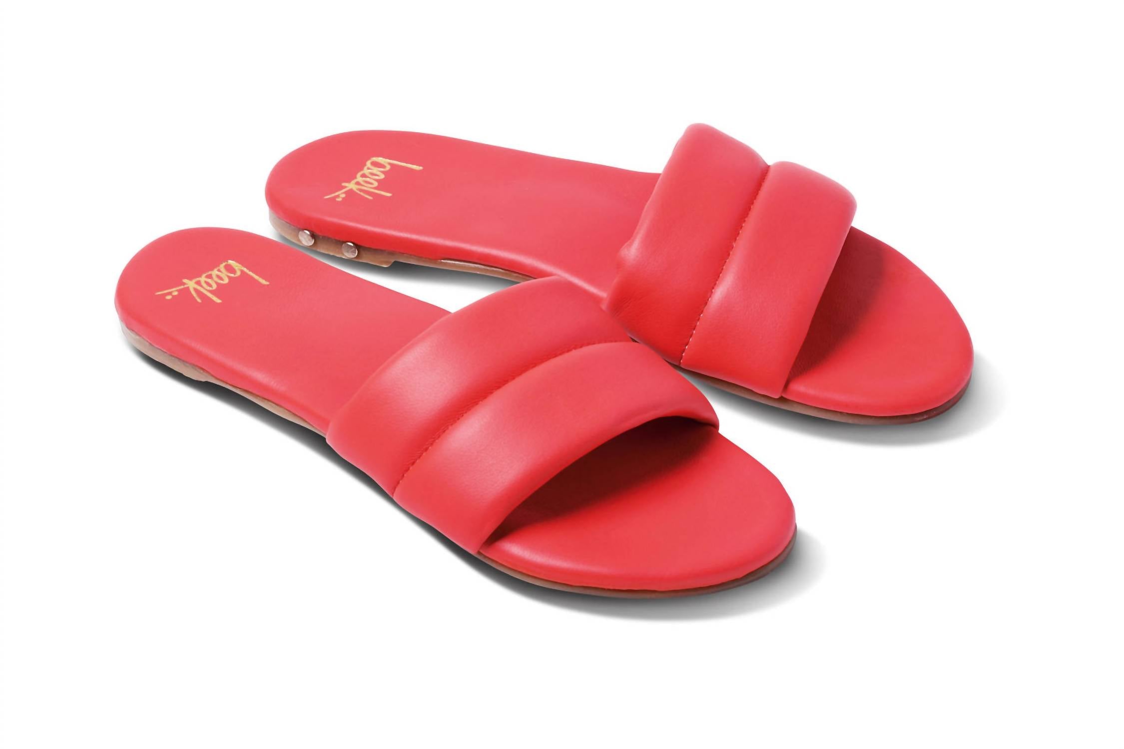 This sandal will take you from brunch to dinner and everything in between. Step into summer with the Women's Sugarbird Sandal by beek, a perfect blend of style and comfort in a vibrant Flamingo color. This minimalist slide features an open toe and leather-wrapped memory foam molded footbed for ultimate comfort. Crafted with a soft leather upper, lining, and a rubber outsole, it promises both style and grip. To maintain its pristine condition, simply wipe clean with a damp cloth and condition 2-3 times a year, excluding metallics.