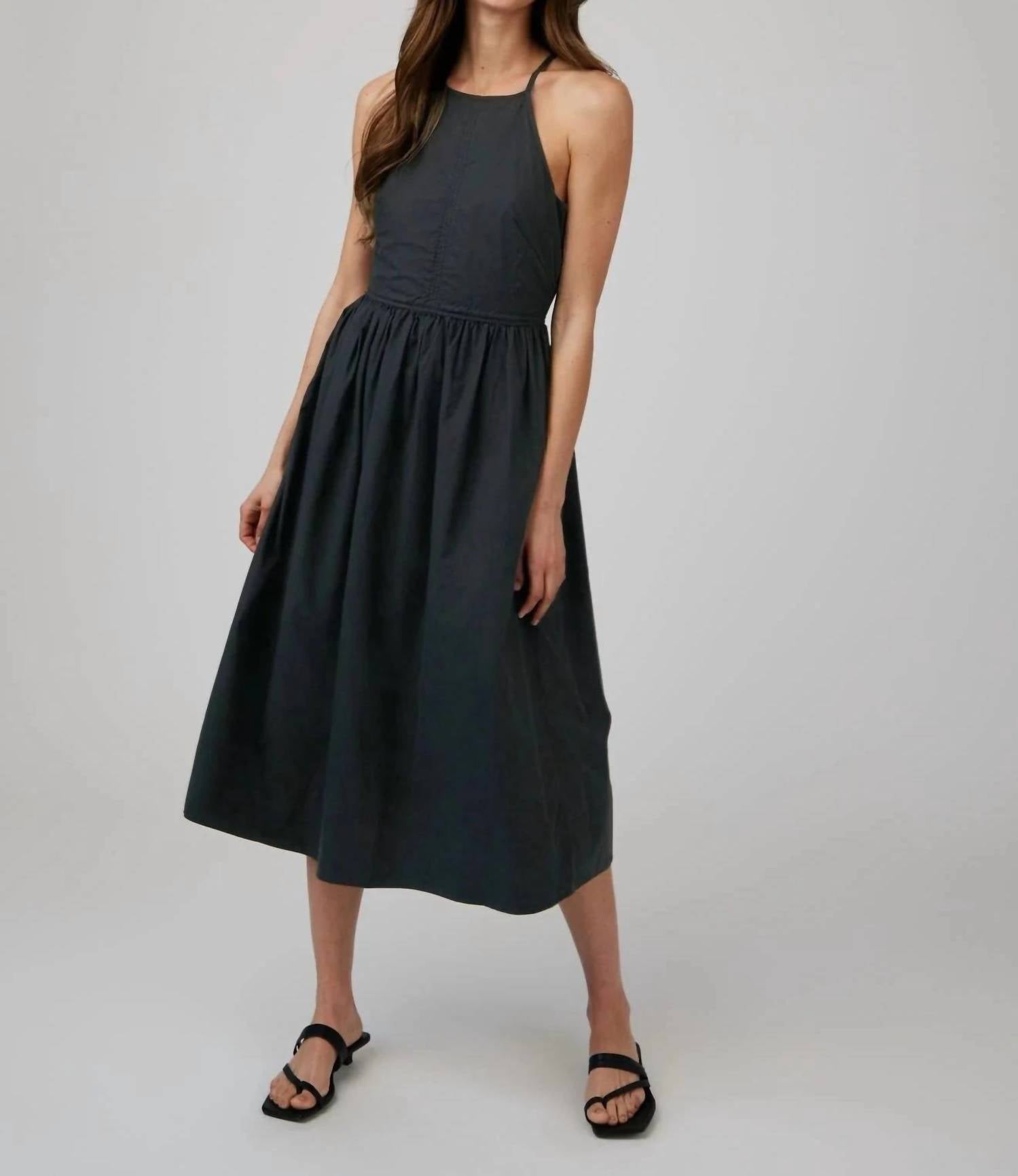 Just add slides or mules and you are good to go. Experience timeless elegance with the Fitted Midi Halter Dress by Bella Dahl, ideal for those balmy Summer days. This minimalist, sleeveless dress is crafted from a comfortable 50% Cotton and 50% Tencel blend, in a flattering A-line silhouette. Featuring a chic halter neckline and a convenient button closure, it's designed to impress for any vacation or 4th of July celebration. Care is effortless with machine wash compatibility.