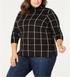 Belldini Women's Plus Plaid Cowl Neck Sweater Black Size XL
