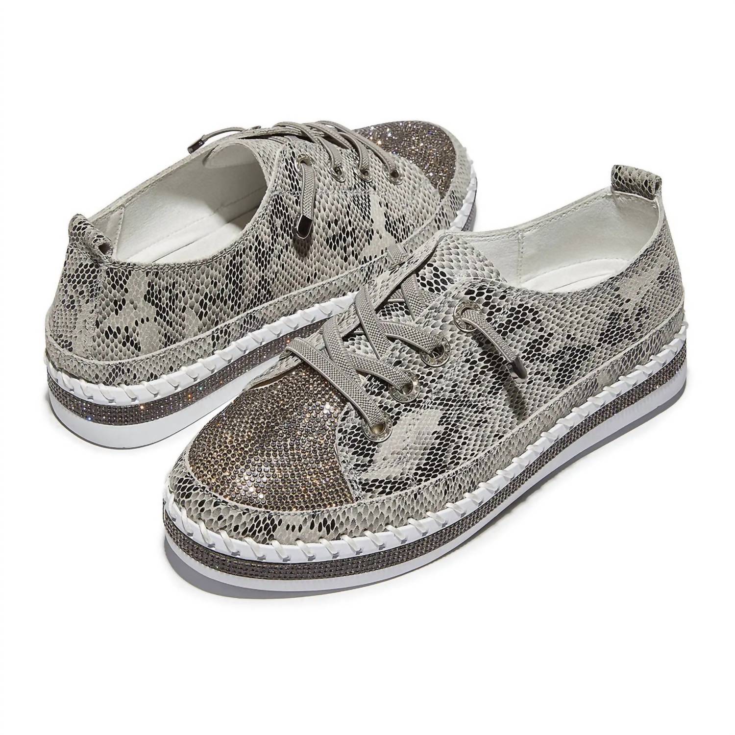 Get your daily steps in with these adorable sneakers. Step up your summer vacation style with the Women's Tw Jodie Sneaker by BERNIE MEV, showcasing a bold maximalist Python design. Crafted from luxurious leather, these sneakers offer a chic yet comfortable choice with a flat heel and a classic round toe. Ideal for those looking to make a statement, they beautifully merge fashion-forward aesthetics with practicality. Embrace the essence of summer with each step you take in them.