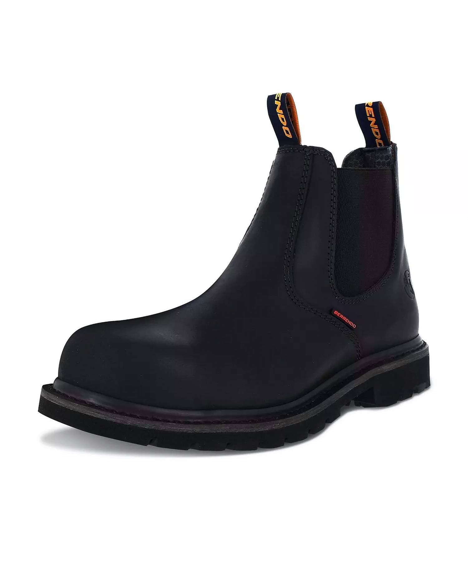 6” Steel Toe Work Boots Pull-On Chelsea – Electrical Hazard, Oil and Slip Resistant. ASTM F 2413-18 rated safety boot with steel toe and electrical hazard protection. Built with Stretch welt technology that makes it 50% more flexible than traditional Goodyear Welt construction footwear. Removable PU footbed for easy washing. Built with a protective steel toe cap, these work boots for men meet ASTM F2413-18 safety toe standards, guarding against onsite impact and compression hazards. Stay protected across diverse environments. These men's work boots meet ASTM F2413-18 electrical hazard resistance safety standards for ultimate workplace security. Built with our special stretch Goodyear welt construction for great durability and flexibility, and a solid rubber outsole with oil, slip and high abrasion resistance properties for optimal job performance. Ideal for heavy duty work, including construction, welding, masonry, metal fabrication, manufacturing and outdoor tasks, these boots adapt to your versatile needs. Steel Toe Cap / Genuine Leather / Rubber Outsole. Wipe clean. Imported.