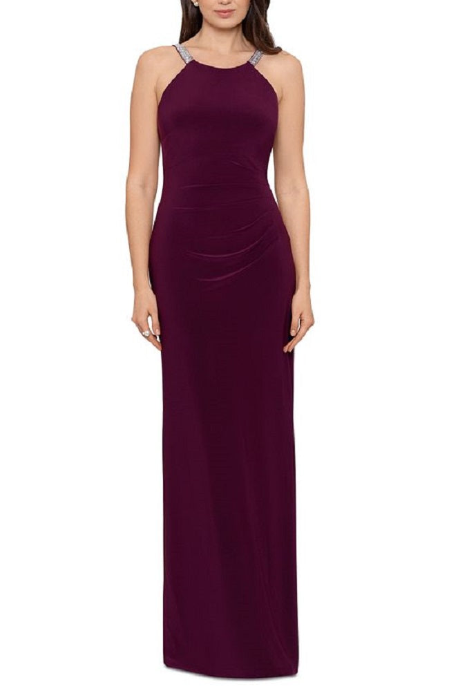 Hidden center back zipper closure|Imported|Embellished halter neckline; Gown silhouette|Pleated detail at front|Connect with a stylist & get free expert advice online or in stores for your wardrobe| home & more. Book Now